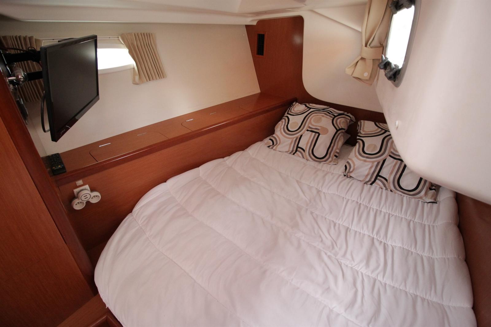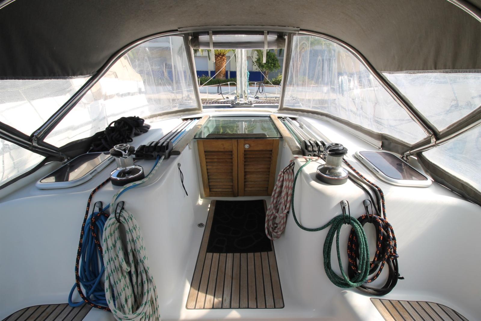 Bimini (très propre de 2019), Capote (très propre de 2019), sellerie de cockpit (sur mesure), Rideaux occultants (dans chaque cabine et carré), 2 Taud de soleil (cagnards), Moustiquaires (dans chaque cabine et carré).