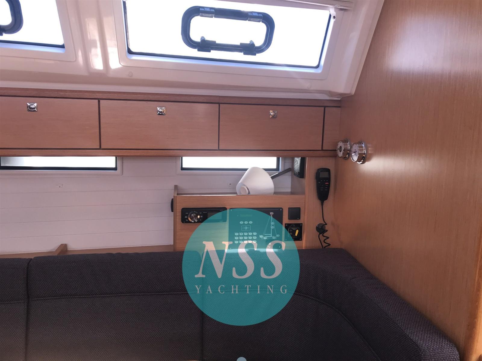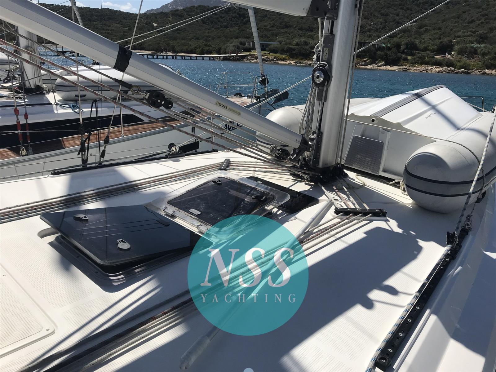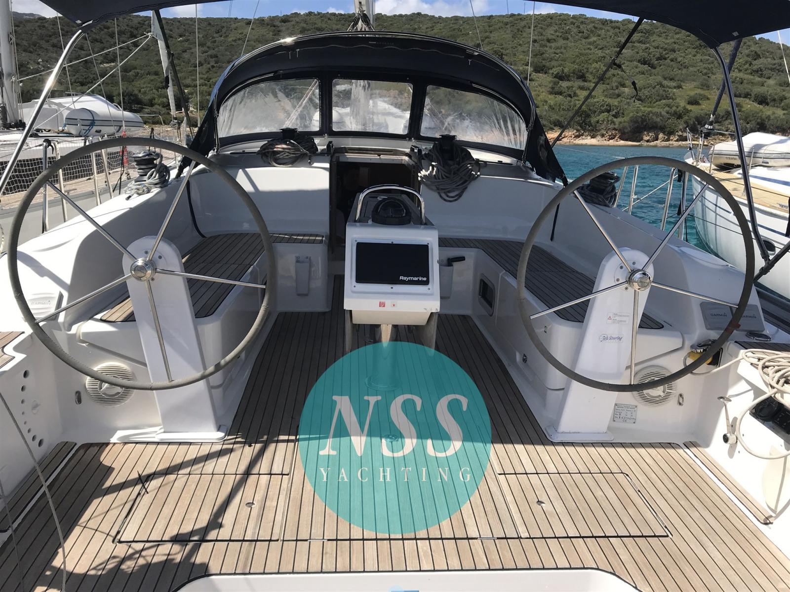 Alarme moteur, Eau sous pression, Passavant en teck, Douche de cockpit, Double barre à roue, Éclairage de courtoisie, Pompe de cale manuelle, Cockpit en teck, Guindeau électrique, Echelle de bain.