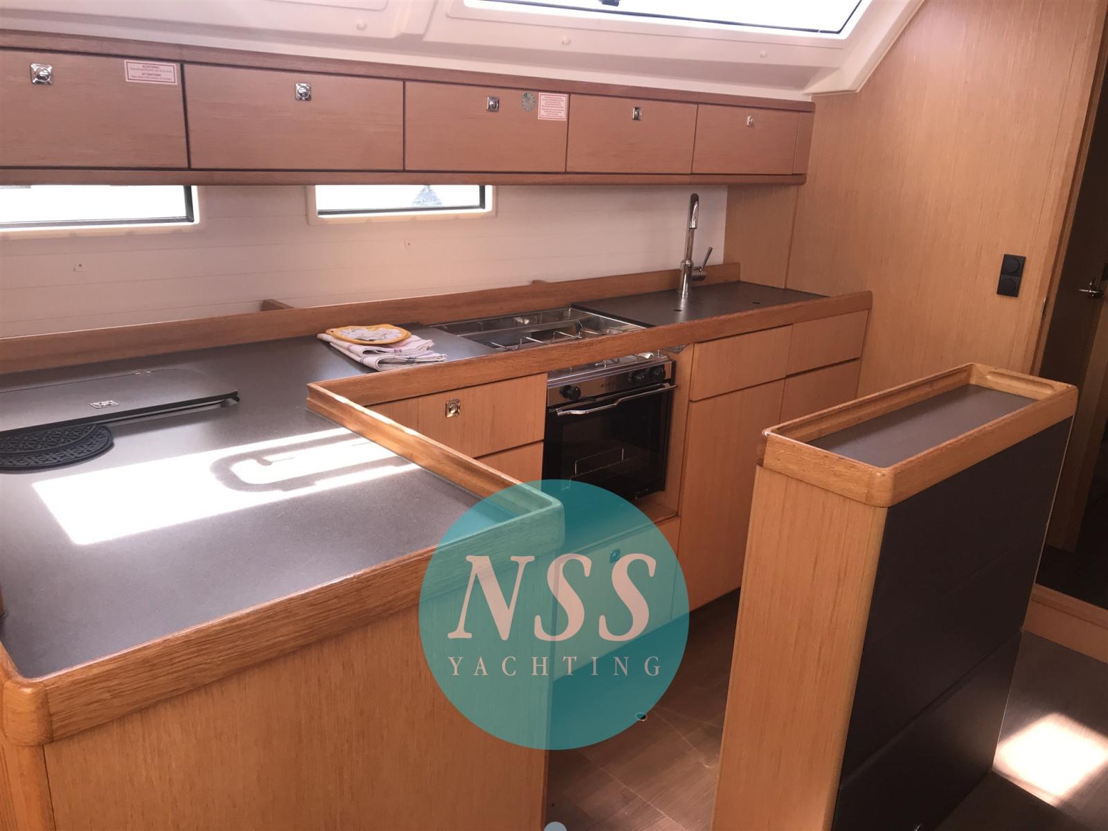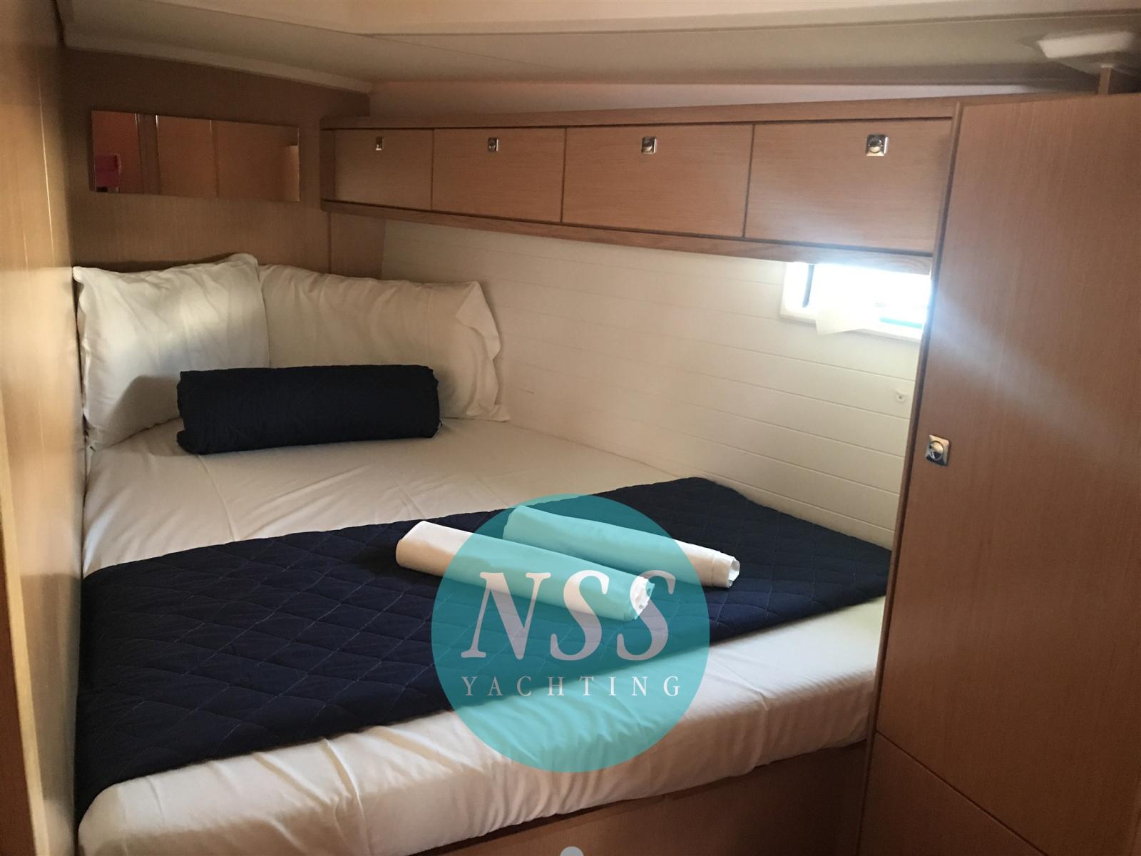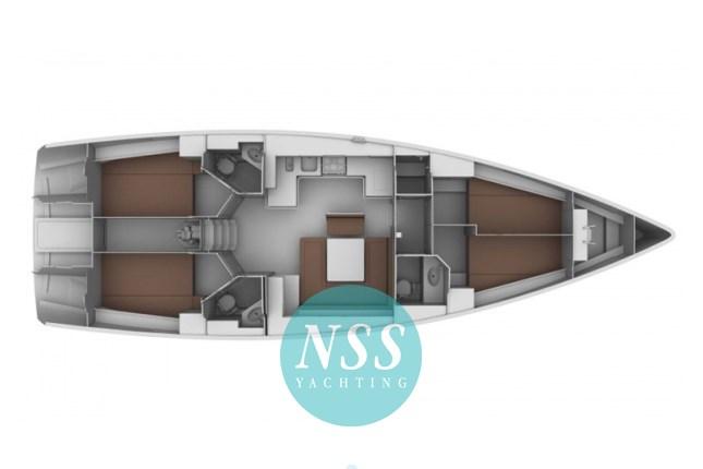 Alarme moteur, Eau sous pression, Passavant en teck, Douche de cockpit, Double barre à roue, Éclairage de courtoisie, Pompe de cale manuelle, Cockpit en teck, Guindeau électrique, Echelle de bain.