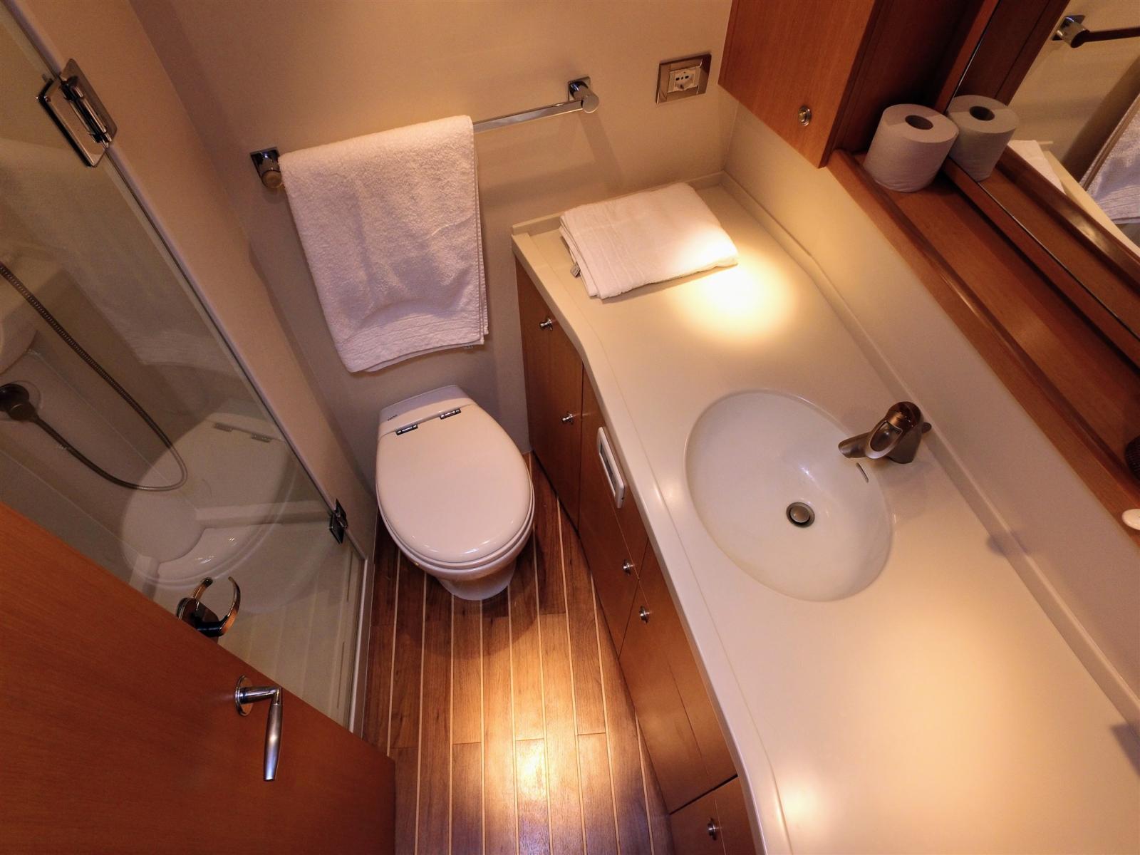 Ballon d'eau chaude, Dessalinisateur (Sea recovery 145l/h), Convertisseur (Mastervolt 24/2500w et Voltmaster24/12 60 amp), Plancher intérieur en bois, Prises interieures 220v, Réservoir d'eau noire, 2 Toilettes électriques.