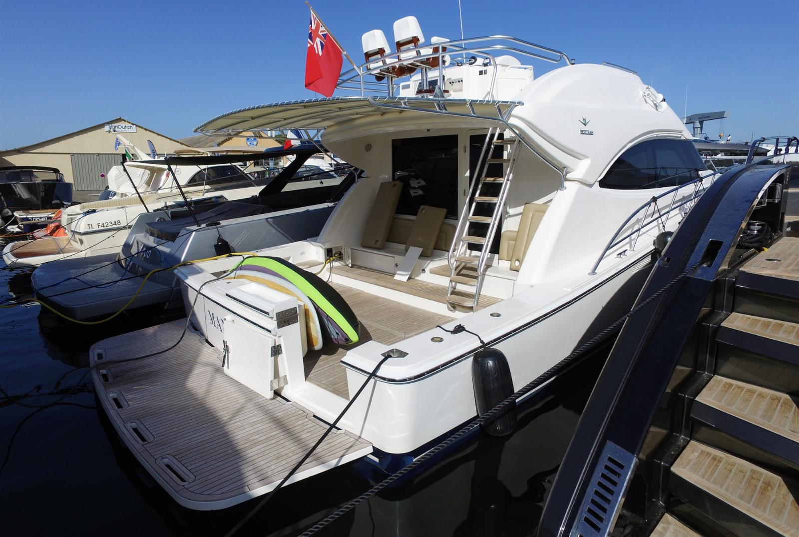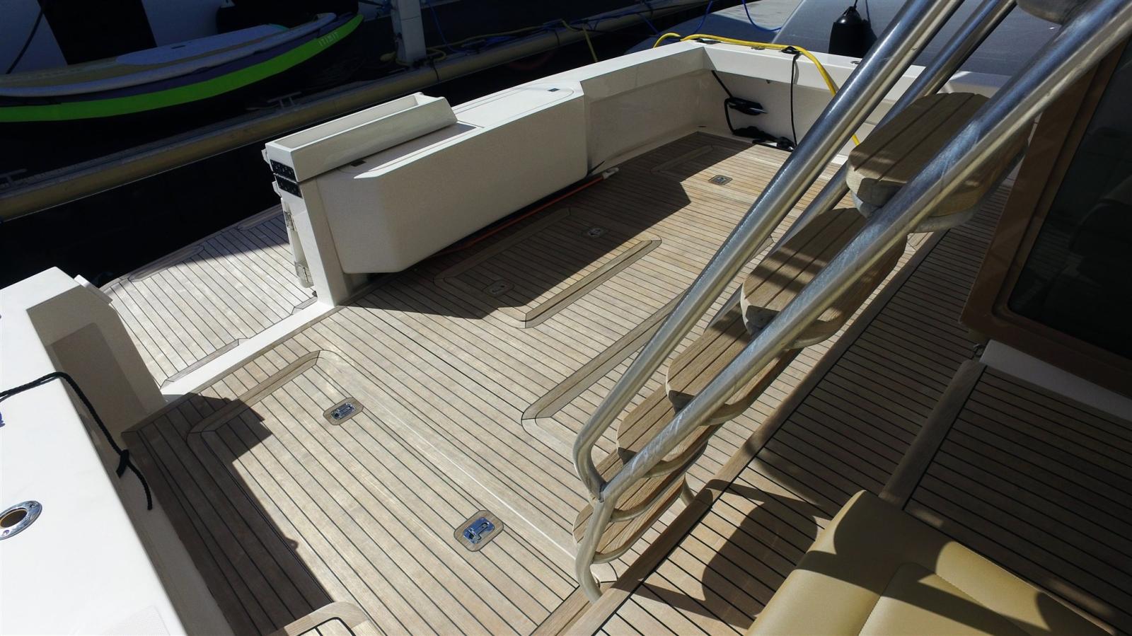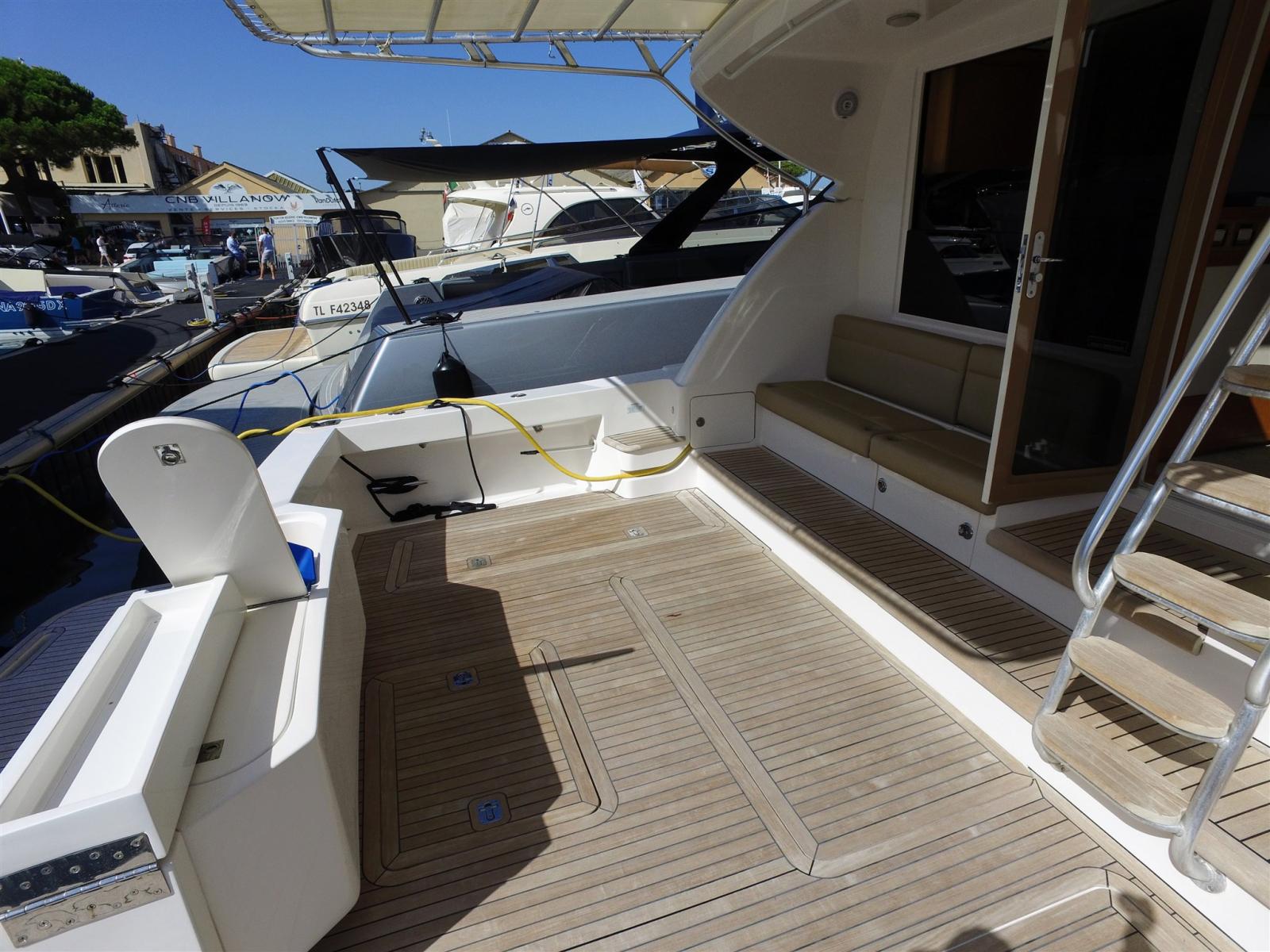 Alarme moteur, Eau sous pression, 12 Batteries (de 2023 6 services 4 moteurs 2 guideau et propulseur), Chargeur de batterie (Mastervolt 110 A en 24vlt), Douche de cockpit, Propulseur d'étrave (Side Power), 2 Flaps hydrauliques, 2 Extincteur(s) fixe(s), Lavage de chaine, Éclairage de courtoisie, 3 Spots sous-marins (Led blanc), Plateforme arrière, Pompe de cale automatique, Pompe de cale manuelle, Cockpit en teck (en 8mm), Prise de quai, Connexion eau sous pression à quai, Guindeau électrique (1000 W), Echelle de bain, table de cockpit (hydraulique sur fly avec coussin), Table pliante de salon (Hydraulique), Annexe.