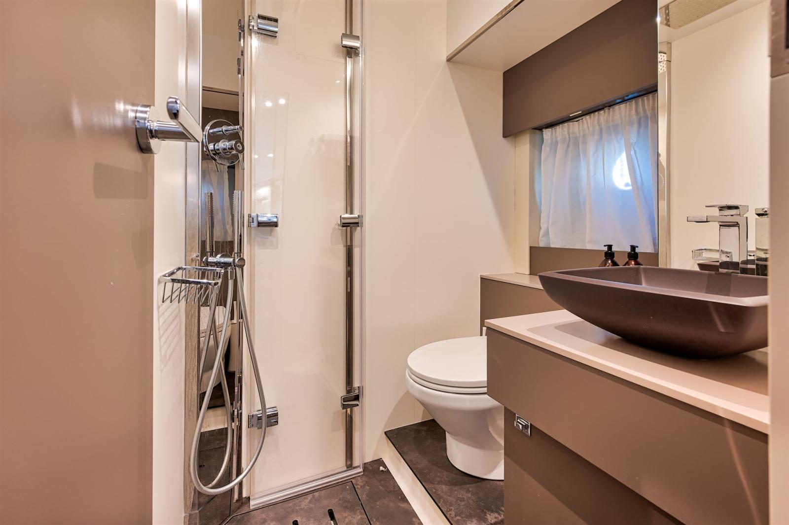 2 Air conditionné (Cabins 16.000BTU & Cockpit 8.000BTU), BBQ/ Grill, Ballon d'eau chaude (Boiler 25l), Prises interieures 12v, Prises interieures 220v, Réservoir d'eau noire, 2 Toilettes électriques.