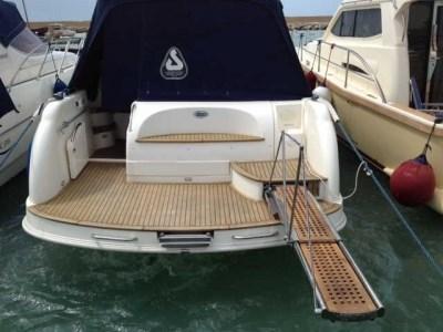 3 Batteries, Douche de cockpit, Flaps hydrauliques, Passerelle, Plateforme arrière, Pompe de cale automatique, Cockpit en teck, Prise de quai, Guindeau électrique, Echelle de bain.
