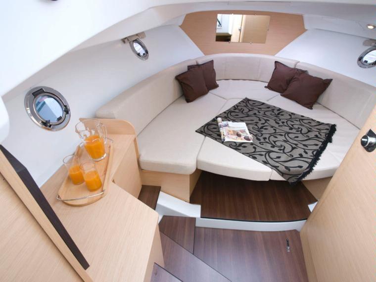 volets électriques - chaudière - lumières led - arceau de sécurité - auvent - coussins - table rétractable - 2 supports de tige - phare de profondeur - onduleur 220v - auvent de plus de 2 mètres. Bénéteau original