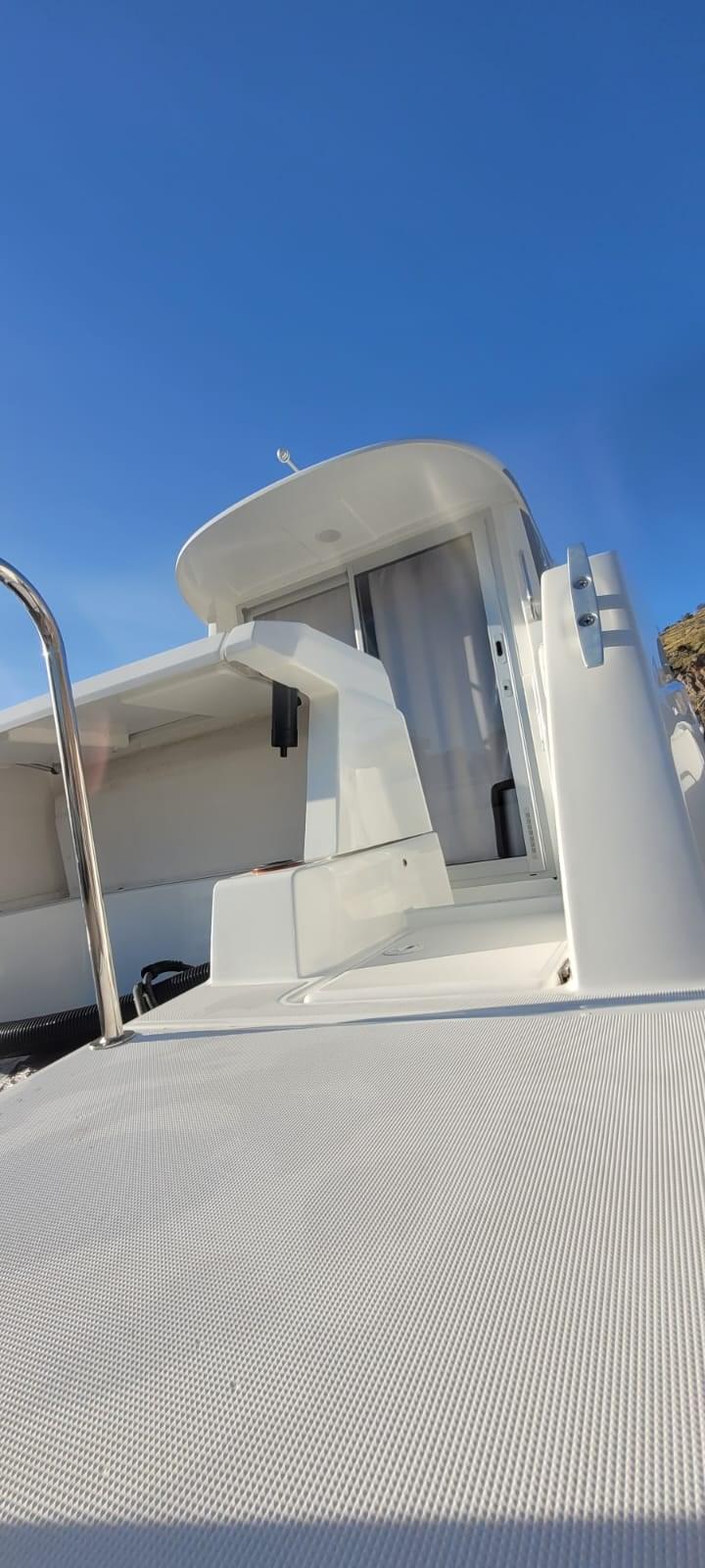 Bimini (Copertura del pozzetto Graphite compatibile con porta canne sul roof), Supplément bain de soleil (Prendisole a prua).
