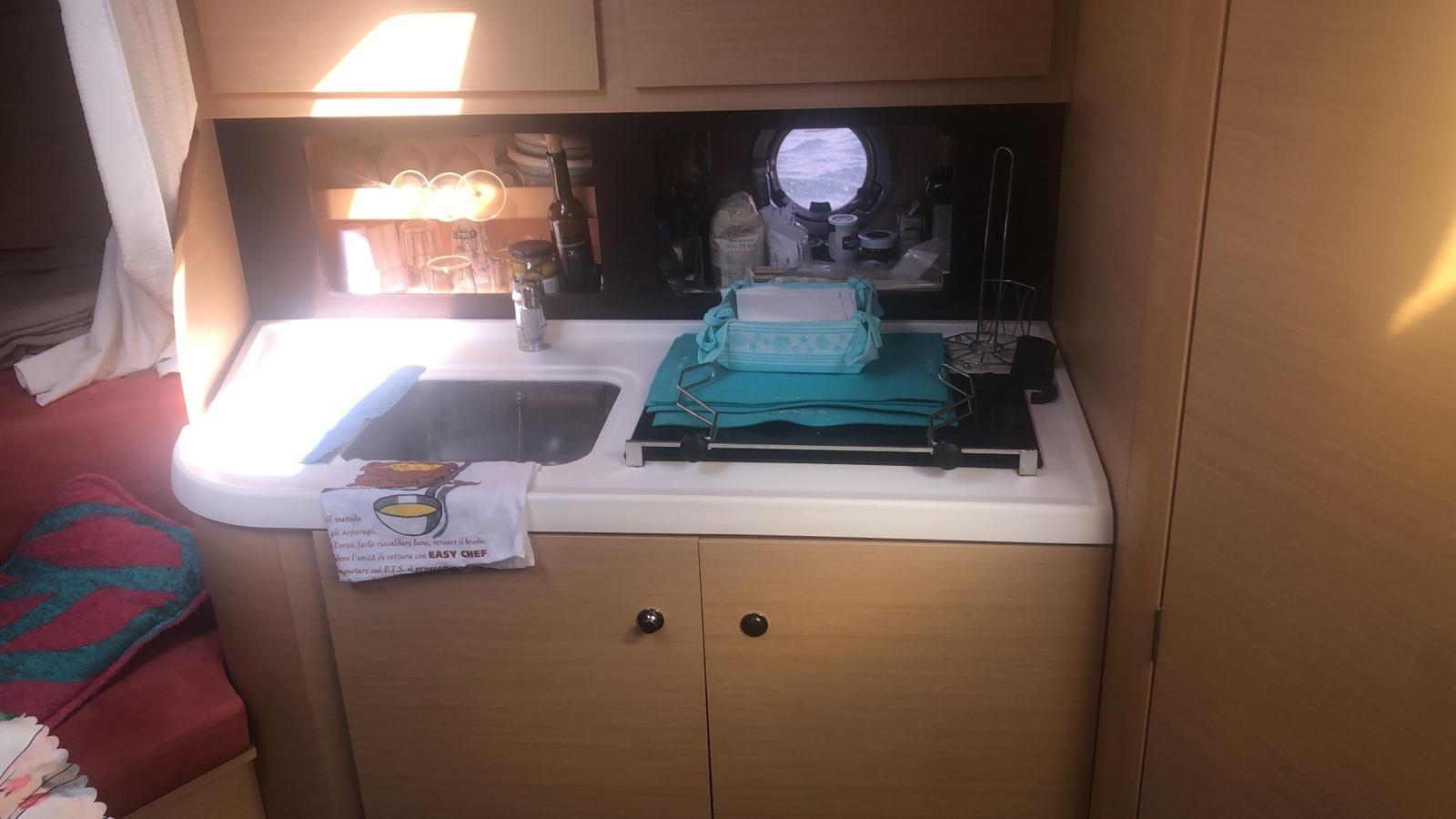 Alarme moteur, Ancre (con catena), Eau sous pression, Douche de cockpit, Plateforme arrière (teak), Pompe de cale manuelle, Prise de quai, Onduleur, Rollbar, Guindeau électrique.