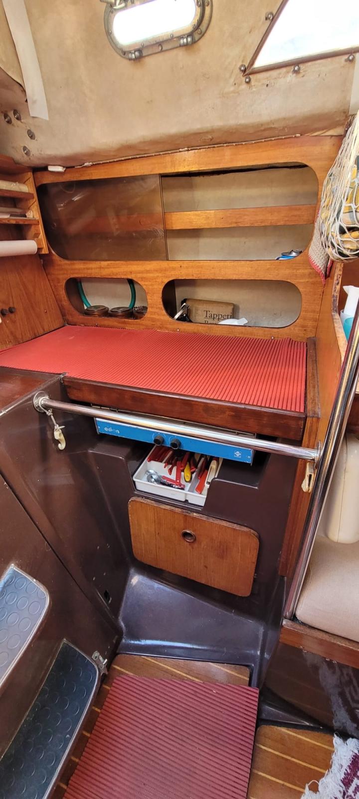 gréement refait en 2007, sangle d’étrave, dernière cale sèche 2021, pas d’osmose, prises d’eau, extincteurs, ventilateur