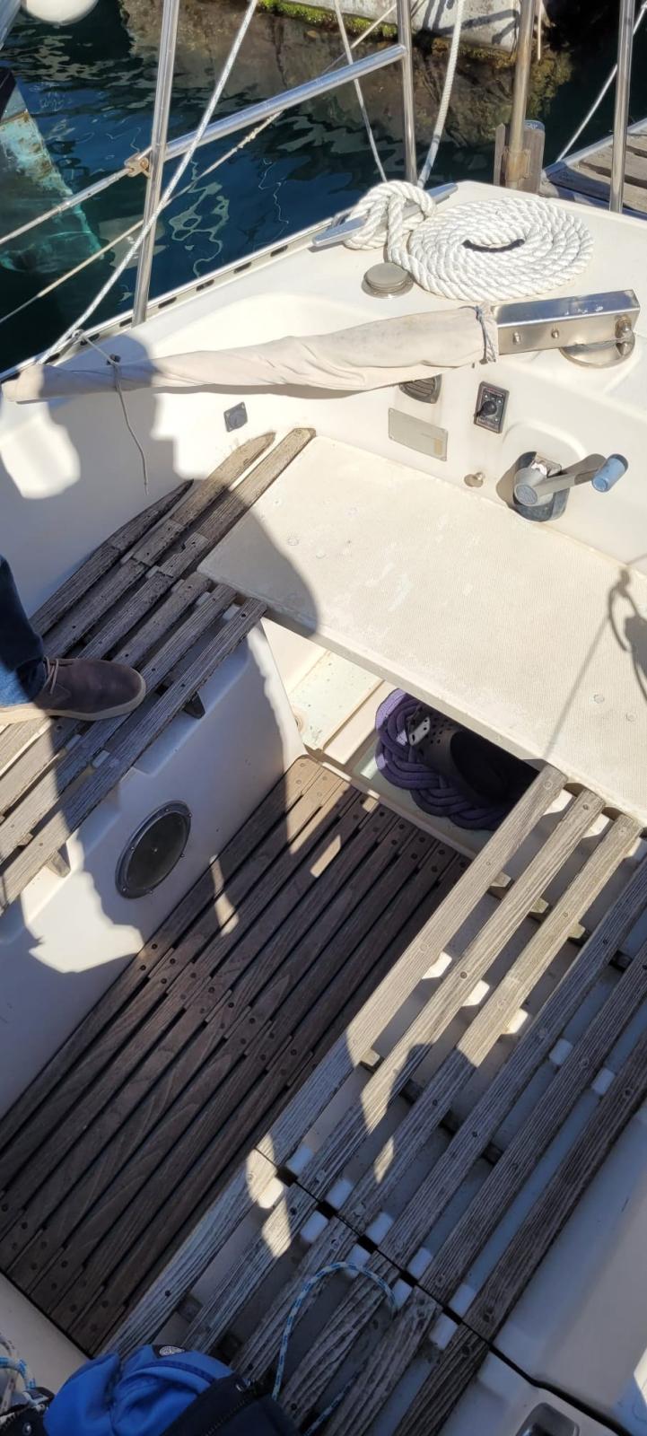 Ancre (60 metri x 6 mm), 3 Enrouleur pour cable électrique (2+1 motore), Douche de cockpit, Pompe de cale manuelle, Guindeau électrique (750 w + contacatena), Echelle de bain, 4 Winch.