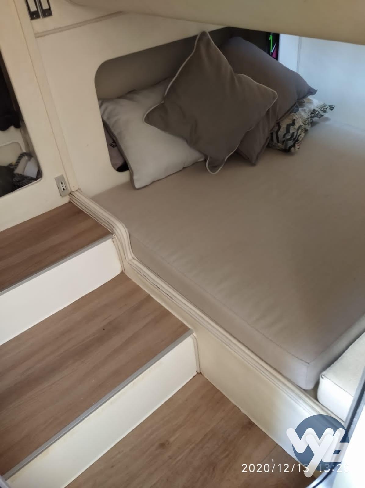 Rembourrage intérieur, matelas et oreillers, plancher de cabine, chargeur de batterie, onduleur, VHF, réfrigérateur, haut-parleurs stéréo.
