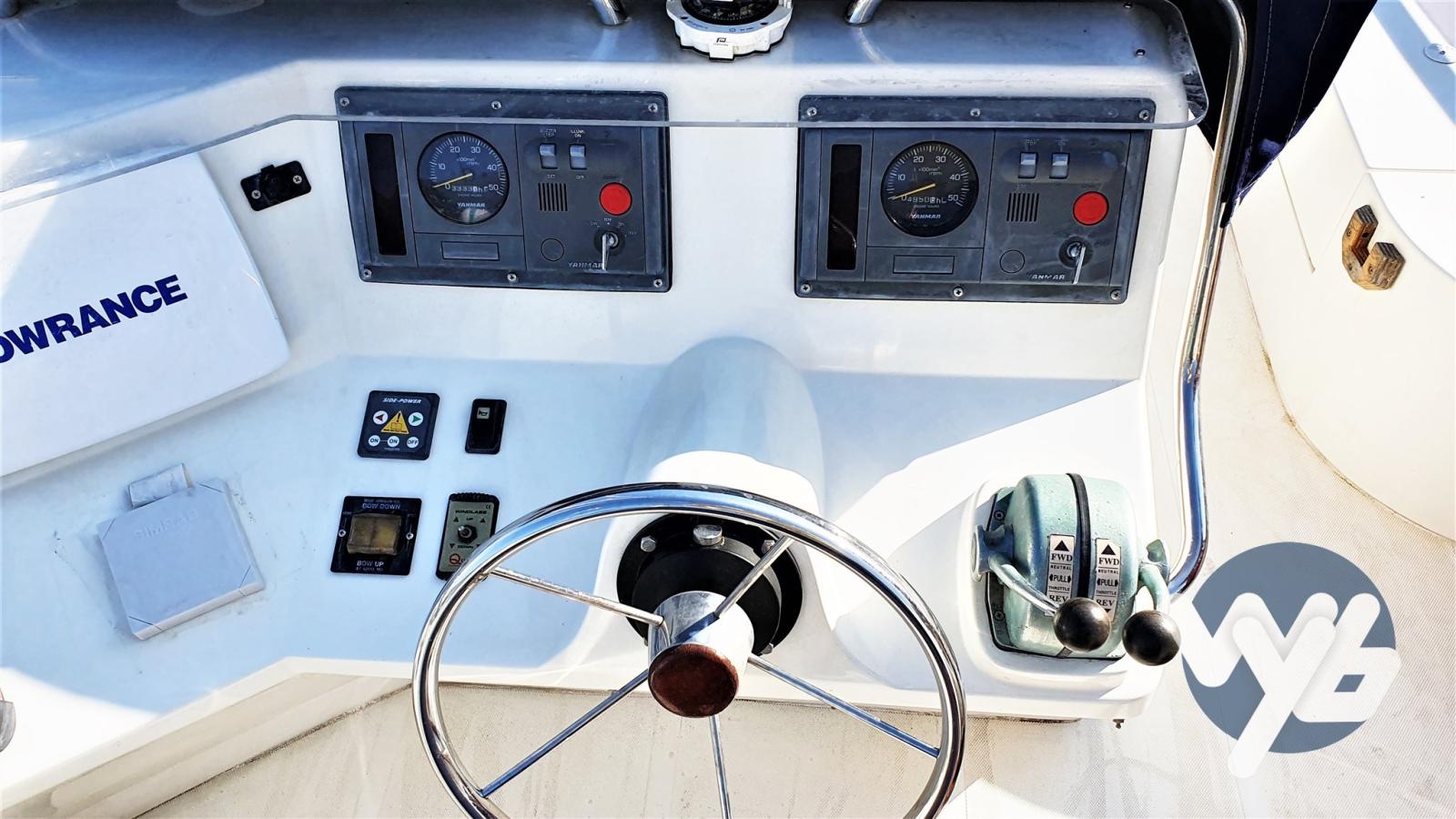 Faible consommation, à 24 nœuds de croisière la consommation est de 55 lt/h au total. Grande cabine principale. Bain. Dinette transformable. Kitchenette équipée.