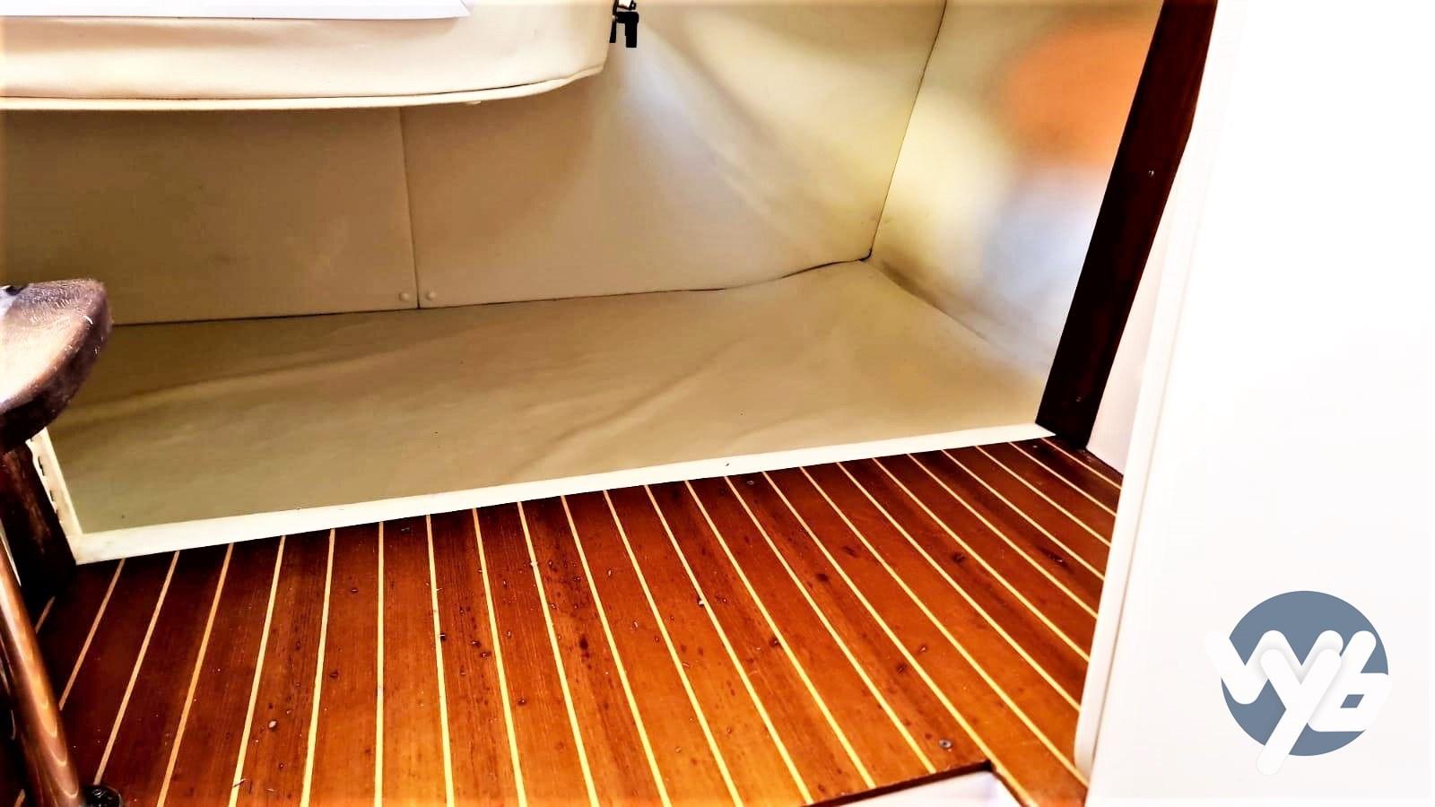 Alarme moteur, Alarme de pompe de cale, Eau sous pression, Douche de cockpit, Flaps électriques, Pompe de cale manuelle, Cockpit en teck, Prise de quai, Rollbar, Guindeau électrique, Echelle de bain.