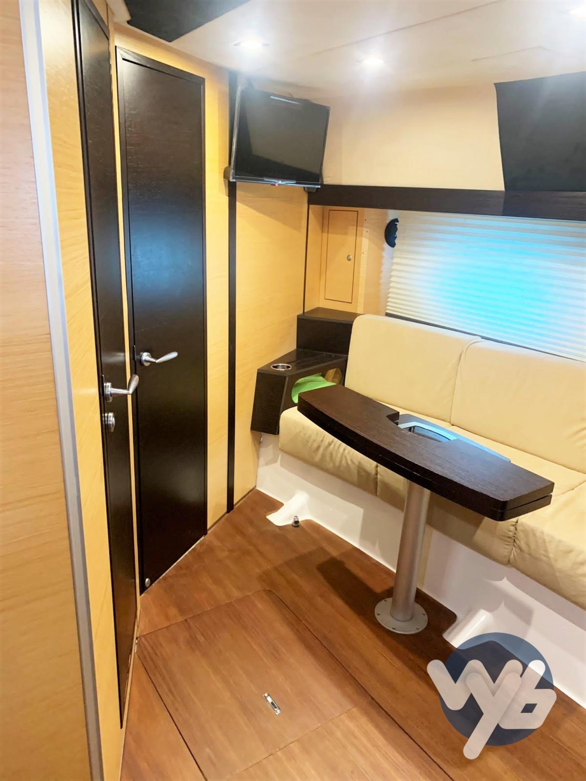 Intérieur en excellent état. Bateau prêt pour la bouée pour la saison 2024 : moteurs antifouling et coupants déjà réalisés. Garantie concessionnaire jusqu’en mars 2024.