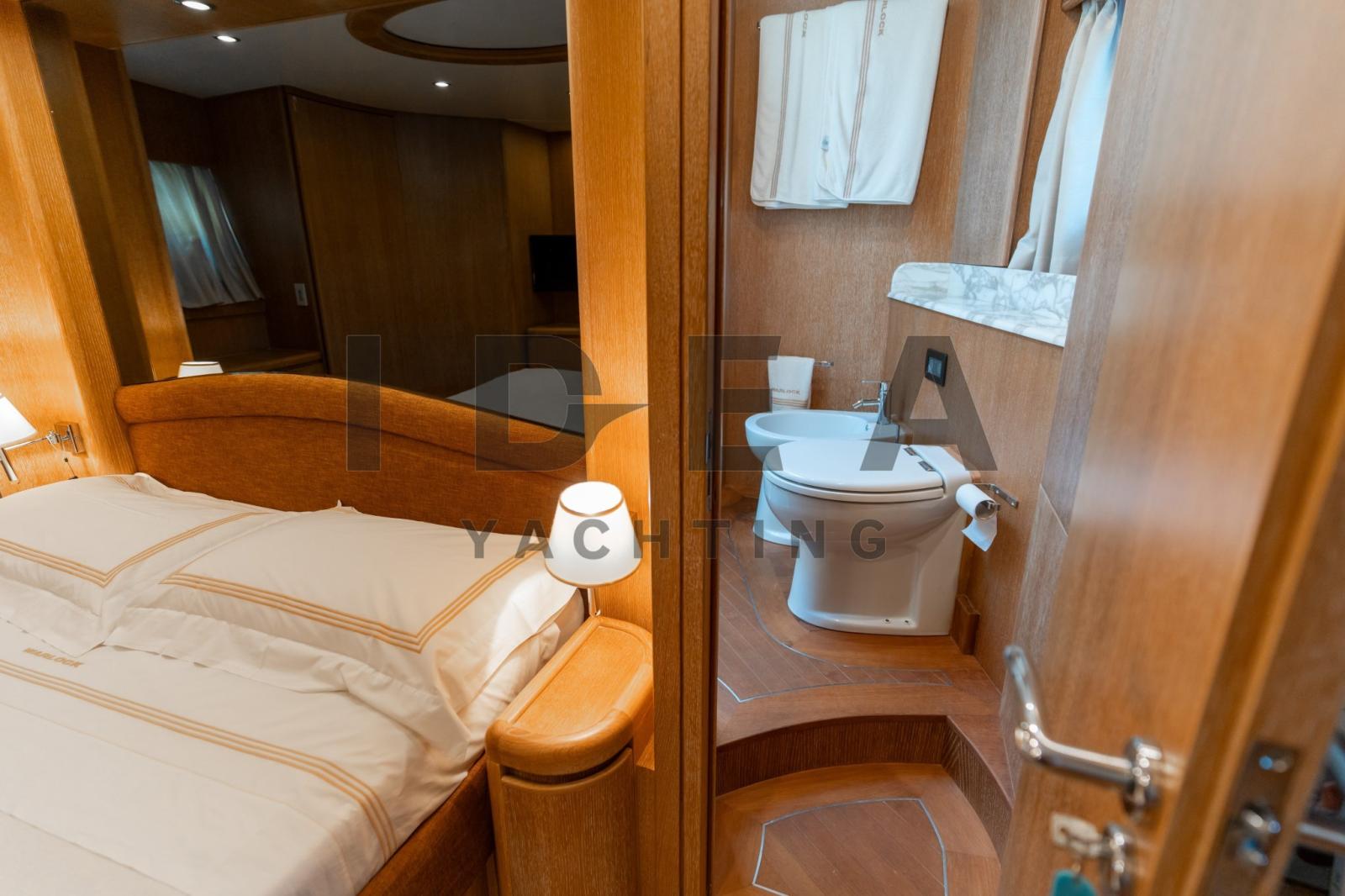 Alarme gaz, Alarme moteur, Alarme de pompe de cale, Ancre (Bruce 50Kg), 3 Eau sous pression (2×24V, 1x 220V), 2 Radeau de sauvetage, 2 Système de vidange, 6 Chargeur de batterie (2x services, 2x engines, 2x generators), Douche de cockpit, Double barre à roue, Propulseur de poupe (Hydraulic), Propulseur d'étrave (Hydraulic), Phare de poursuite, 2 Flaps hydrauliques, Garage à annexe, Bossoirs pour annexe, Extincteur(s) fixe(s), Compresseur de plongée, Indicateurs de flaps, Éclairage de courtoisie, 6 Spots sous-marins, Passerelle (Opac mare in steel telescopic hydraulic), Plateforme arrière, Porte latérale, 2 Porte latérale, Cockpit en teck, 2 Prise de quai, Répétiteur électronique, Rollbar, Guindeau électrique (Lofrans 2500watt), Echelle de bain (Electric), Selles pour Annexe, Système de filtration des eaux usées (Hamman), table de cockpit, Corne, 2 Winch électrique, 2 Winch électrique arrière, Winch électrique avant.