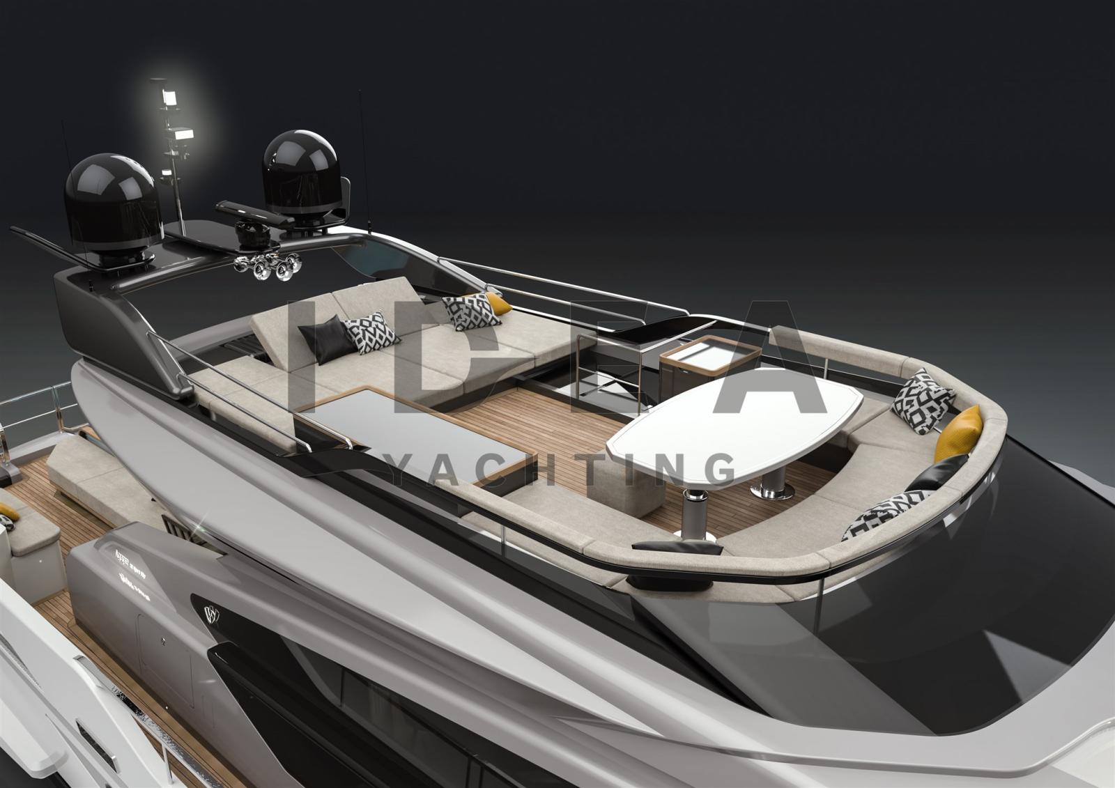 Étant donné que la fibre de verre est déjà prête et assemblée, le yacht peut encore être personnalisé en termes de goût et de besoins pour le client et sera disponible pour une livraison dans les 16 à 18 mois suivant la signature de l’accord.