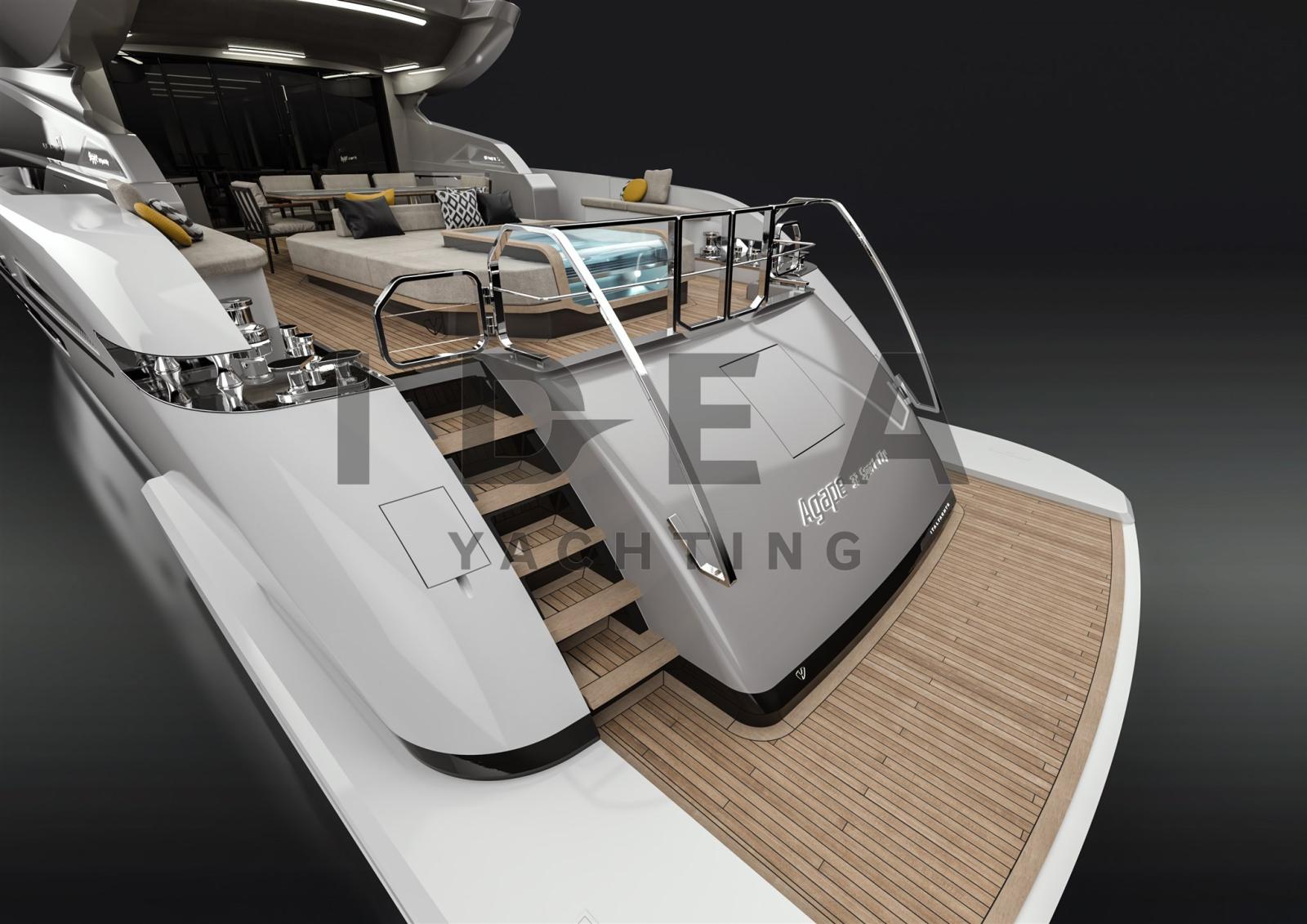 L’une des caractéristiques les plus remarquables de cet Agape 32 modernisé est ses capacités de performance améliorées. Il est conçu pour atteindre des vitesses impressionnantes allant jusqu’à 40 nœuds. Cet exploit remarquable est réalisé avec seulement deux moteurs, chacun délivrant 2600 ch, contre trois moteurs du modèle précédent de 1800 ch chacun. Cela met non seulement en valeur l’ingénierie de pointe, mais reflète également un engagement envers l’efficacité et la technologie de pointe.
