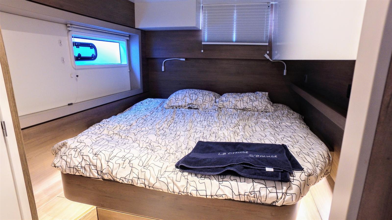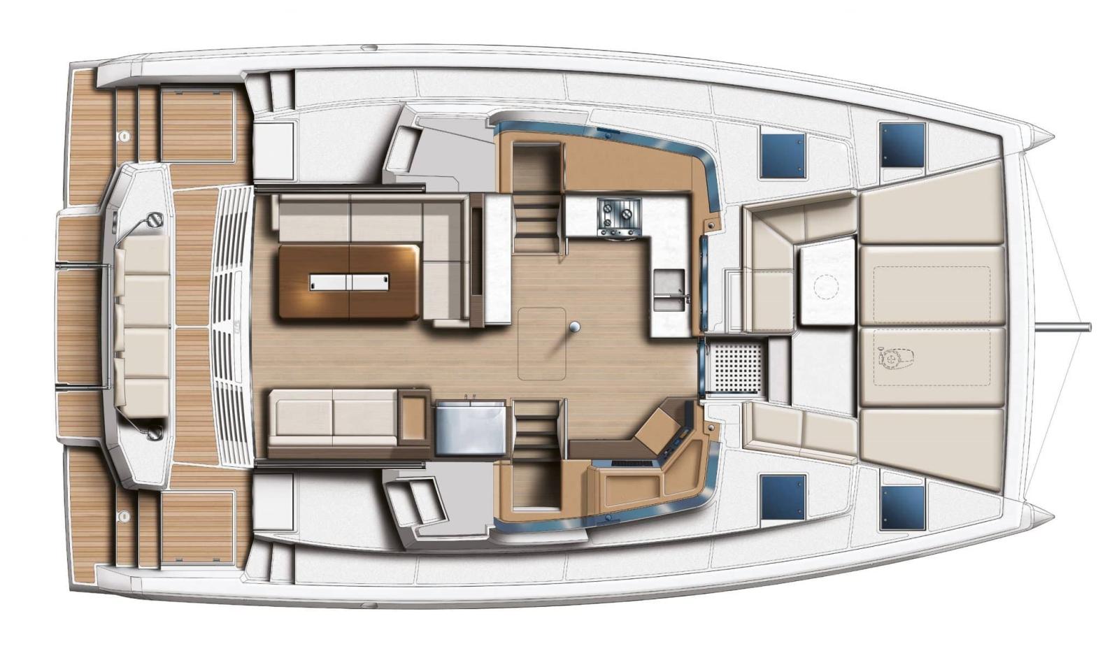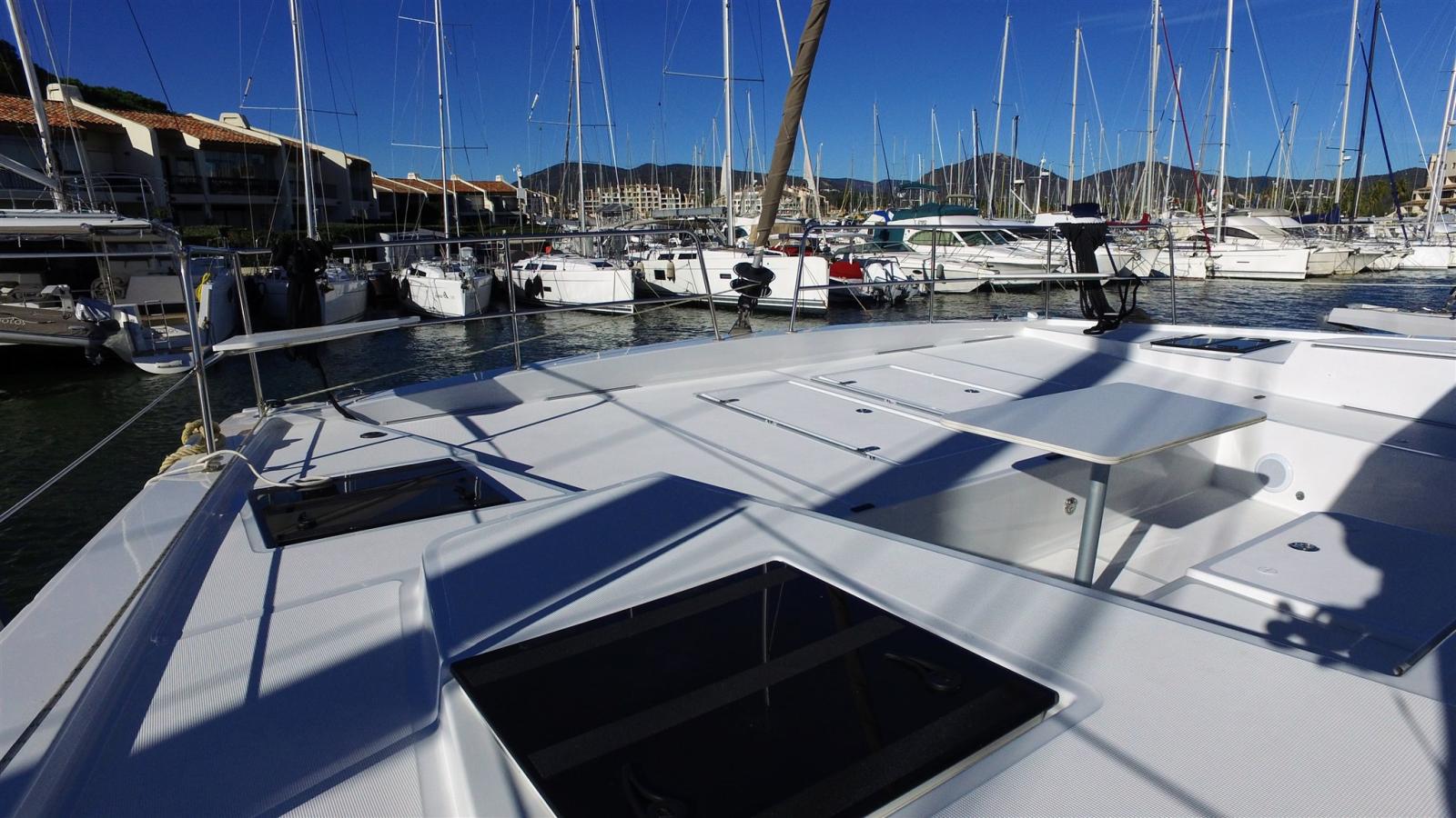 Alarme moteur, Ancre (25kg et 70m de chaine diam 10), Ouverture du compartiment moteur électrique (sur verin), Eau sous pression (avec purificateur), 5 Batteries (650A service et moteurs , avec contoleur), Taquets pliants, Système de vidange, Chargeur de batterie (80 amp), Douche de cockpit (Chaude et froide), Bossoirs pour annexe (electrique), Éclairage de courtoisie (en cabine cockpit et jupes), 4 Spots sous-marins (Bleu), 4 Panneau solaire (400W au total), 2 Plateforme arrière, Pompe de cale automatique, Pompe de cale manuelle, Prise de quai, Guindeau électrique (1000w), Gréement monotoron, Echelle de bain (confort avec mains courante et marches teck), Chaise support HB, table de cockpit (avant et arrières avec pied téléscopique).