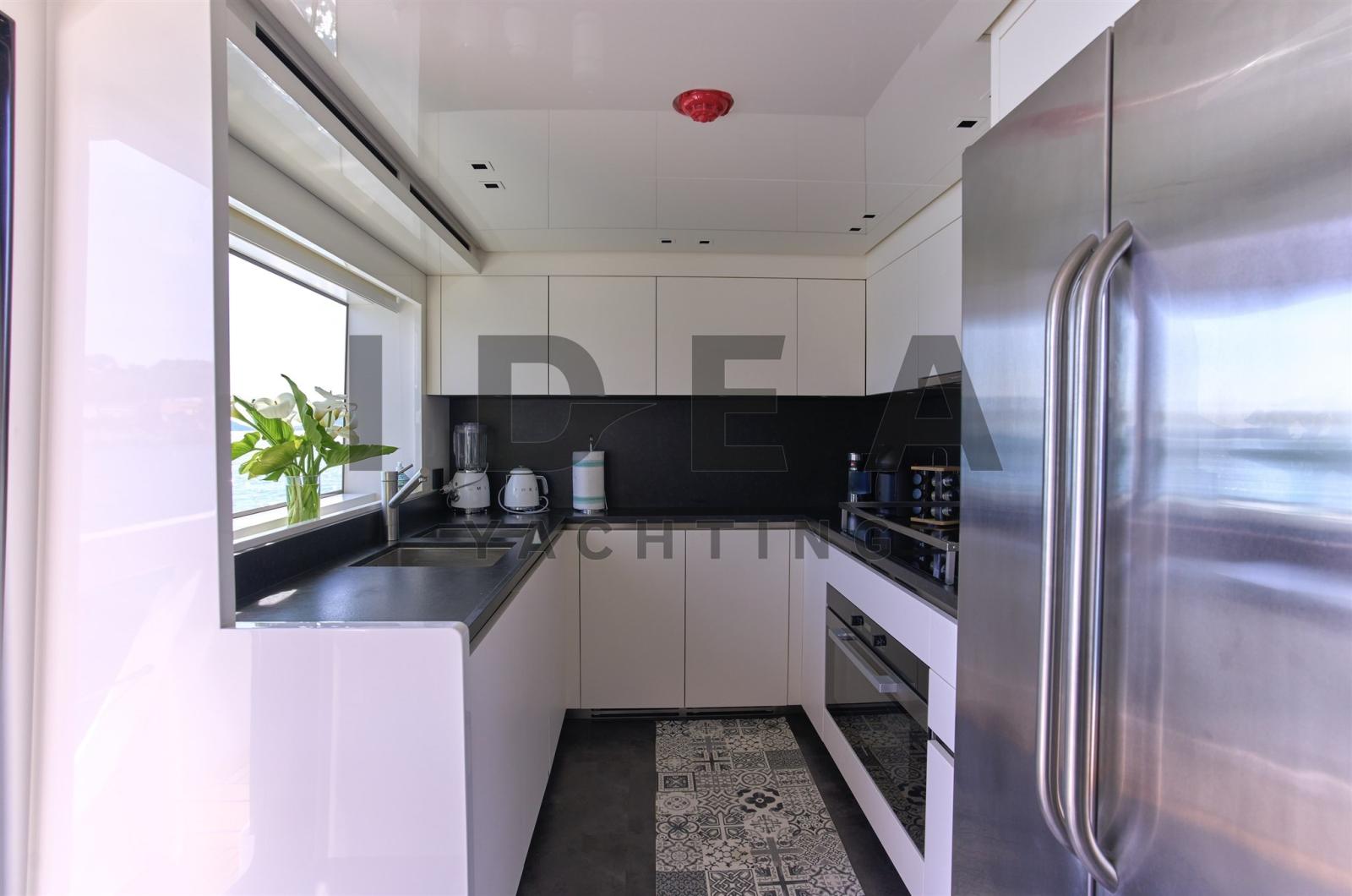 Air conditionné (also on flybridge), BBQ/ Grill, Ballon d'eau chaude (150 l), Coffre-fort, Connexion à internet (Wi-Fi 4G with receiver antenna to receive signal from the port), Gradateur de lumière (for the interiors), Dessalinisateur (Idromar 180 l/h), Plancher intérieur en bois (Parquet), Prises interieures 220v.