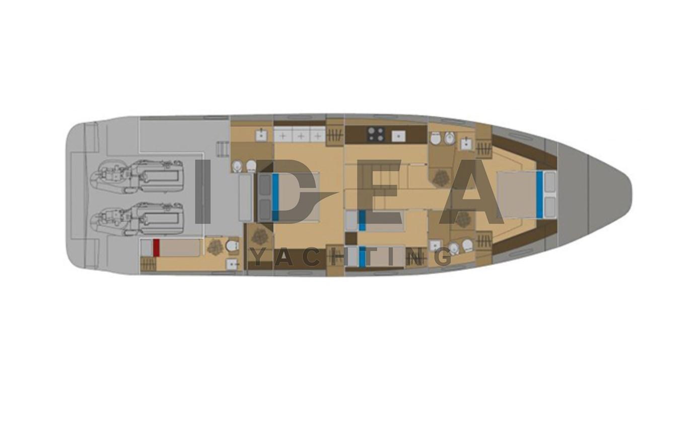 Alarme moteur, Alarme de pompe de cale, Eau sous pression, Passavant en teck, 2 Chargeur de batterie, Douche de cockpit, Phare de poursuite, Flaps électriques, Garage à annexe, Hard top, Extincteur(s) fixe(s), Indicateurs de flaps, Lavage de chaine, Éclairage de courtoisie, Spots sous-marins, Passerelle (Hydraulic telescopic), Plateforme arrière, 5 Pompe de cale automatique, 2 Pompe de cale électrique, Porte latérale, Cockpit en teck, Prise de quai, Connexion eau sous pression à quai, Rollbar, Guindeau électrique, Echelle de bain, table de cockpit (Hydraulic), Annexe, 2 Winch électrique arrière, Winch électrique avant.