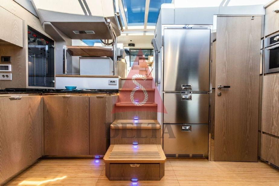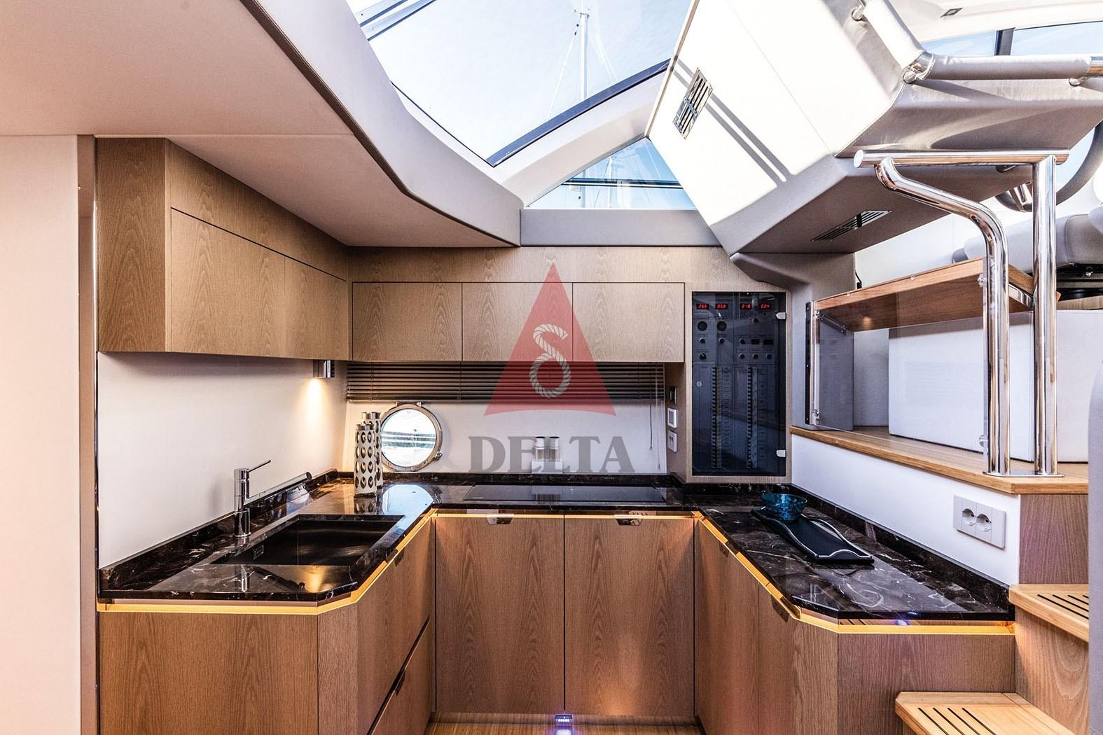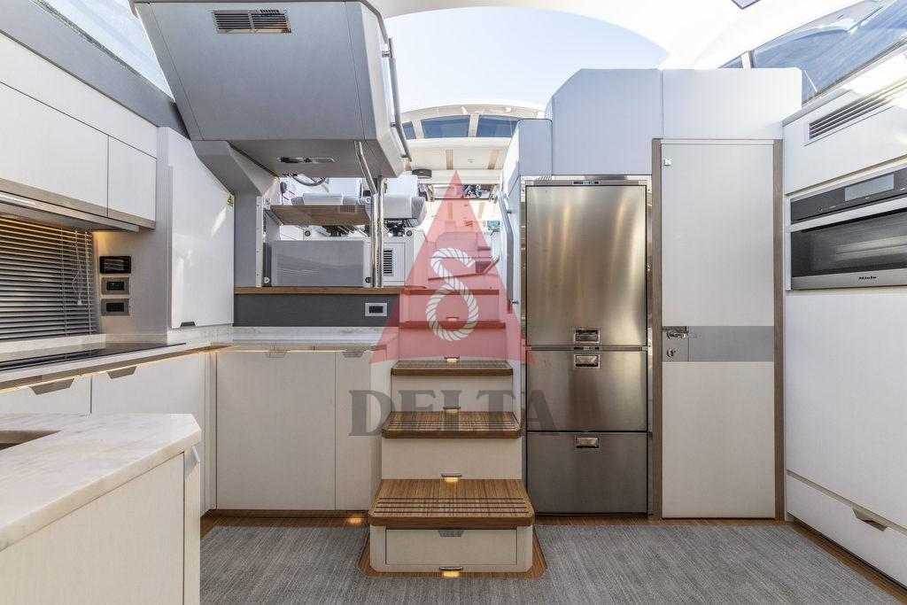 La cuisine est située au milieu du bateau et représente la jonction entre l’extérieur et l’intérieur, créant un environnement unique et spacieux. Le plafond, en cristal, permet une luminosité exceptionnelle. C’est une cuisine exposée, considérée comme un moment de plaisir, de détente et de plaisir du propriétaire et de ses amis / invités. Les cabines sont grandes et confortables : les grandes fenêtres permettent à ceux qui naviguent de se sentir partie intégrante de la mer. Un choix infini de matériaux pour la personnalisation de SPORT COUPE' 56 : comme pour les autres modèles de la gamme, une équipe de professionnels formés accompagne le propriétaire dans le choix de chaque détail de son nouveau bateau où aucun détail n’est laissé au hasard.