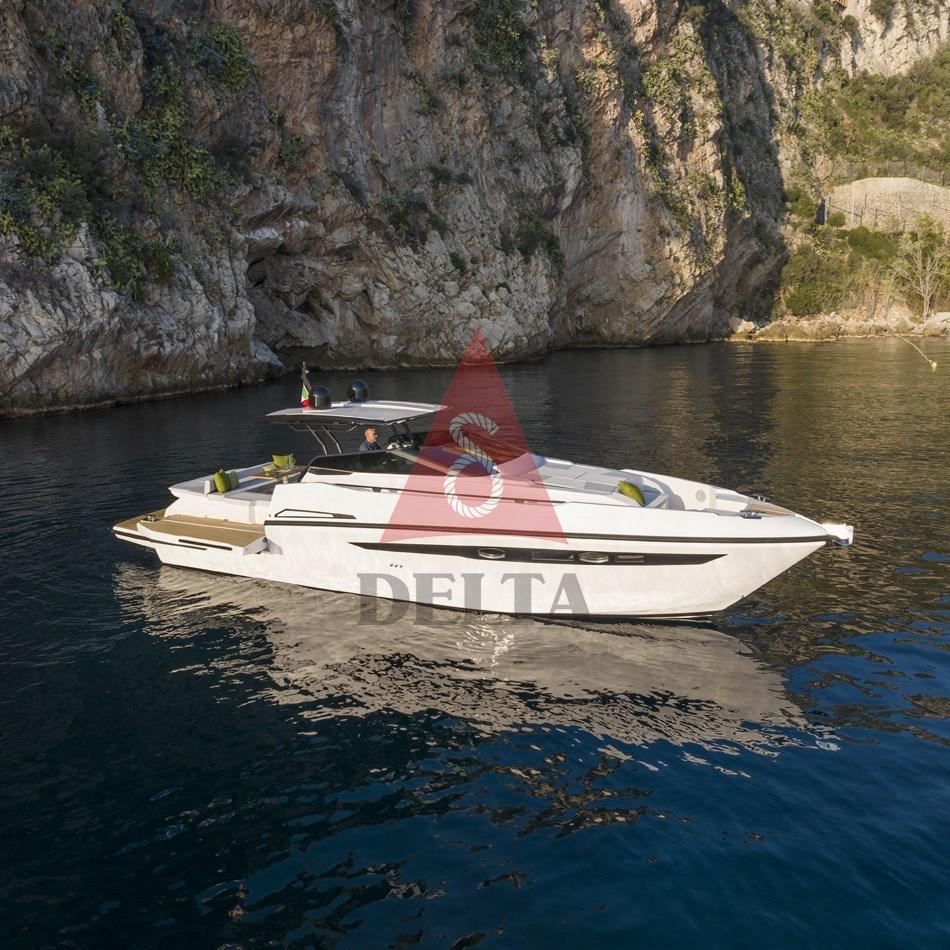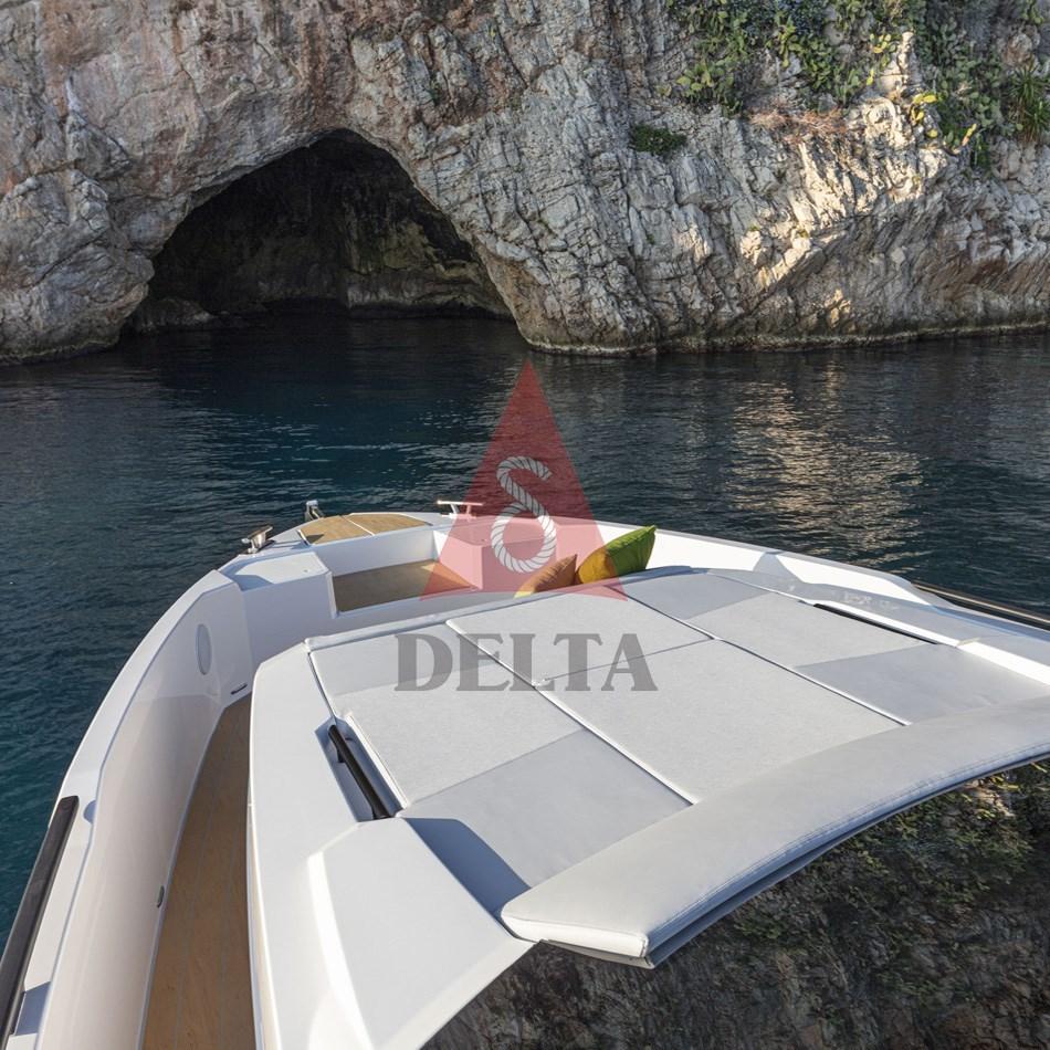 Une carène dont les principales caractéristiques restent fidèles à la gamme : lignes épurées et symétriques, walkaround et console centrale, espace maximal à bord grâce à un cockpit illimité et deux grandes terrasses surplombant la mer.