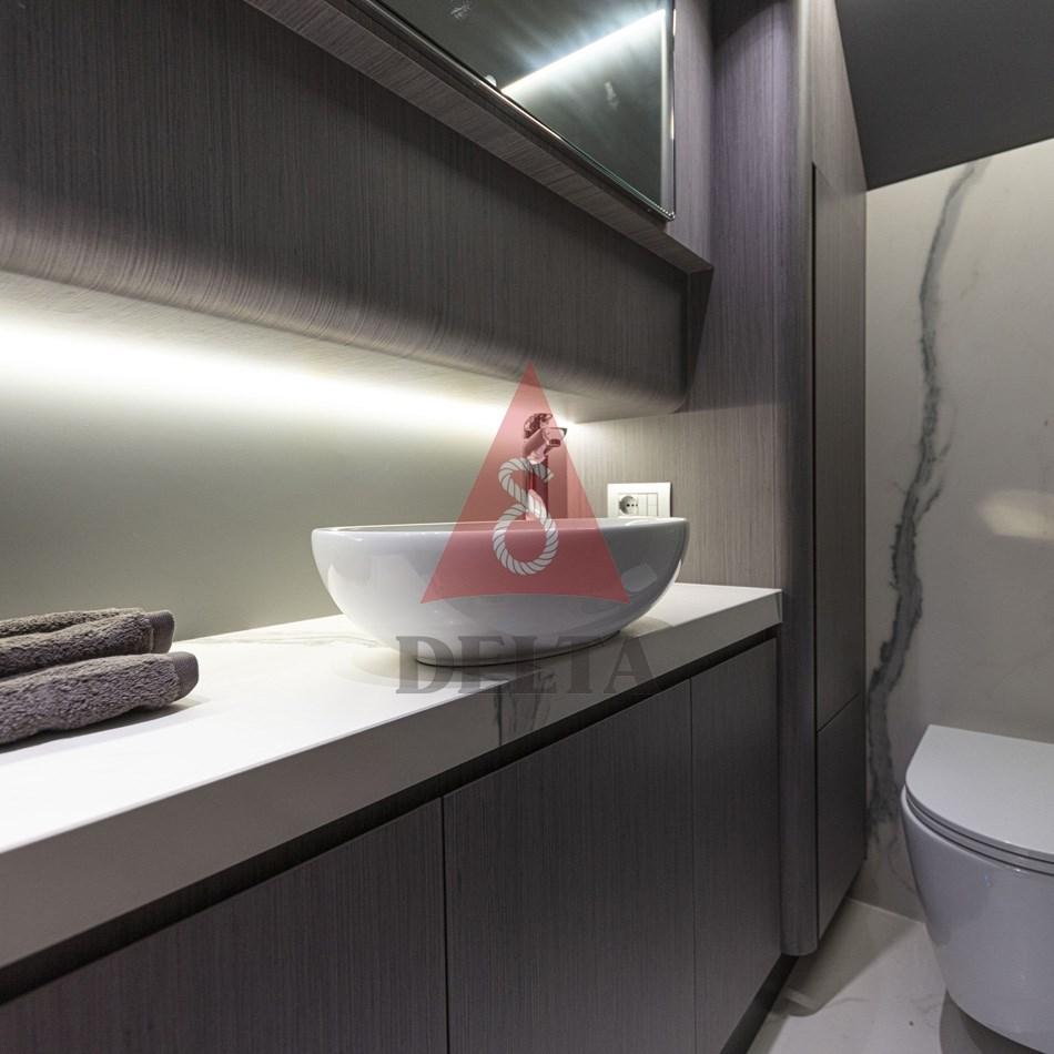 Le cockpit dispose d’un grand bain de soleil, d’un garage à annexe et de sièges mobiles qui vous permettent de changer la disposition du cockpit en quelques minutes. Les deux terrasses qui s’ouvrent sur les côtés permettent de briser les frontières visuelles, de se sentir immergé dans la nature et de faire de la mer une partie du décor.