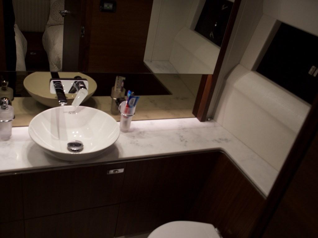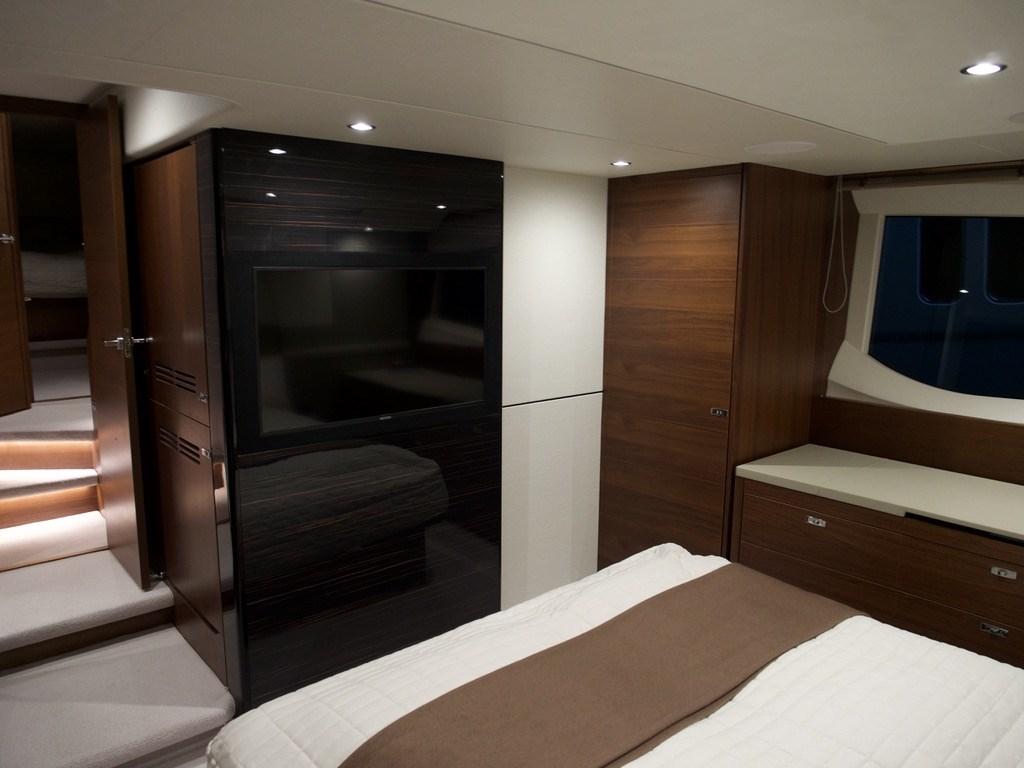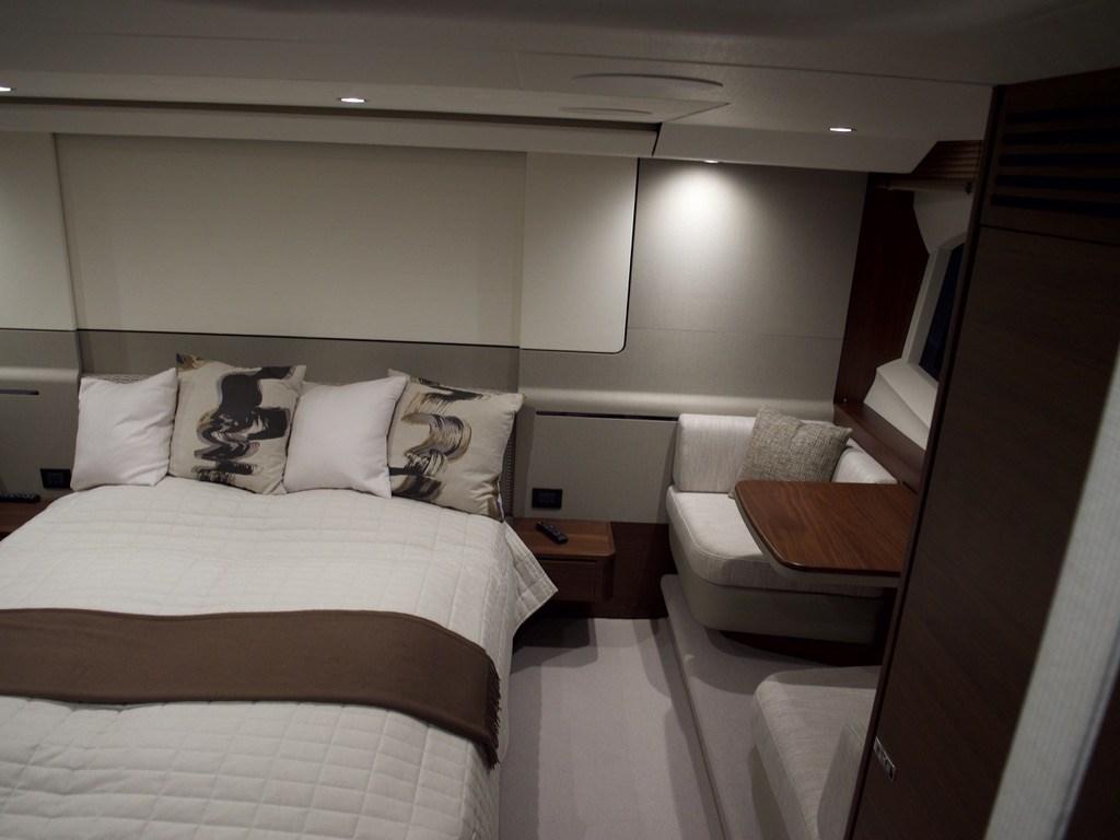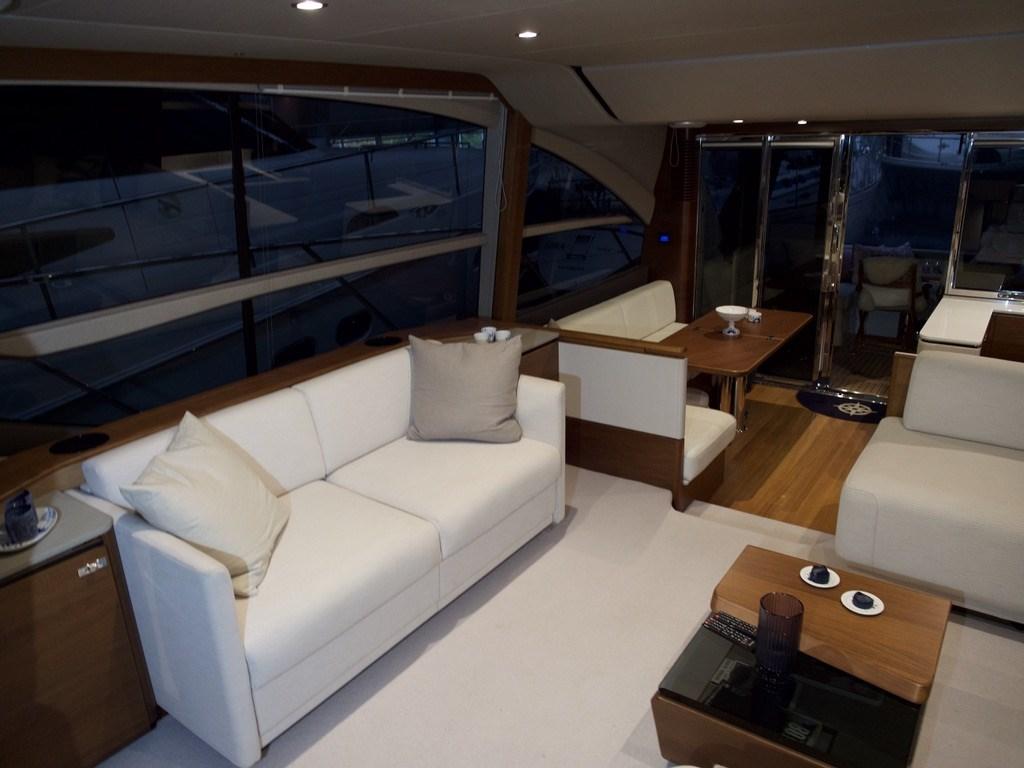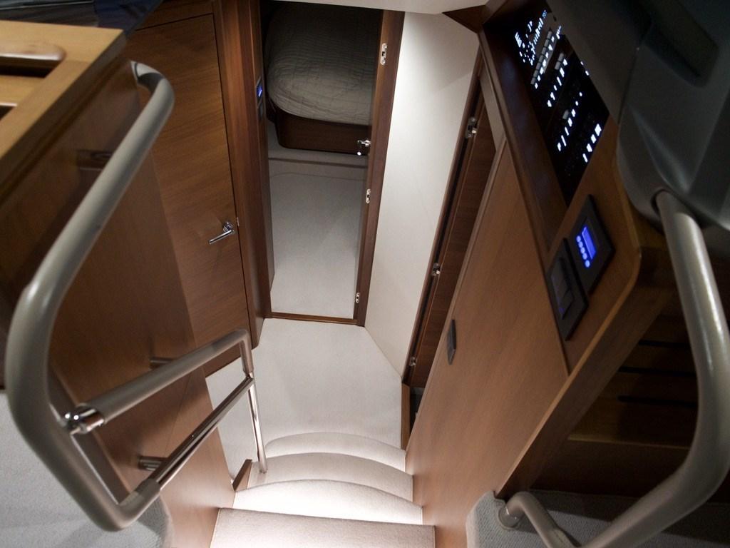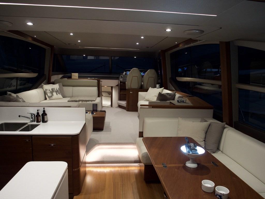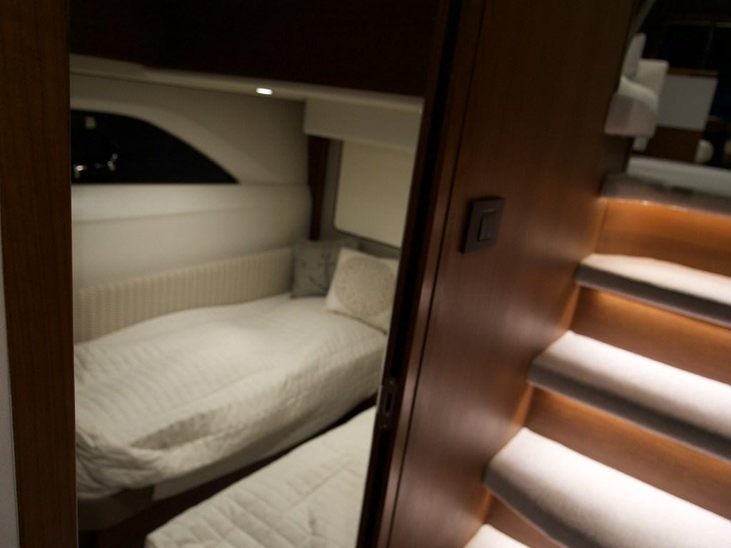 Il y a 3 cabines avec 3 têtes et douches à l’avant de la salle des machines du navire, et une 4ème cabine séparée et confortable / quartiers de l’équipage à l’arrière. À la proue, il y a un coin salon avant, avec un deuxième salon orienté vers l’arrière sur le Flybridge.