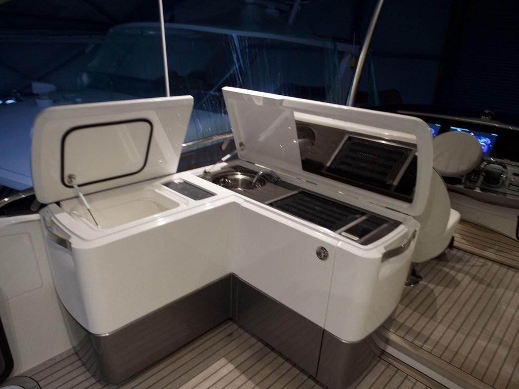 Alarme moteur, Ancre (32 kg stanlees steel), Auto Dynamic Trim Interceptor, Eau sous pression, Passavant en teck, Douche de cockpit, Double barre à roue, Propulseur d'étrave (170 Kg), Hard top, Extincteur(s) fixe(s), Indicateurs de flaps, Jet Boat (Williams), Spots sous-marins, Passerelle (El-hydr. telescopic passereller (3,5 M ) with automatic handrails), Plateforme arrière (Elec/hydr. transom platform with (max tender 300Kg)), Pompe de cale automatique, Porte latérale, Cockpit en teck, Prise de quai, Guindeau électrique, Echelle de bain, Selles pour Annexe, 2 table de cockpit, Table pliante de salon, Filières avec sortie latèrale, Pont en teck, 2 Winch électrique (Electric stern rope handling).