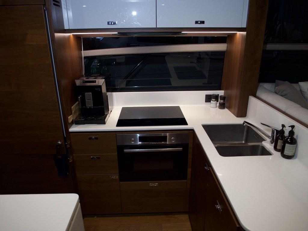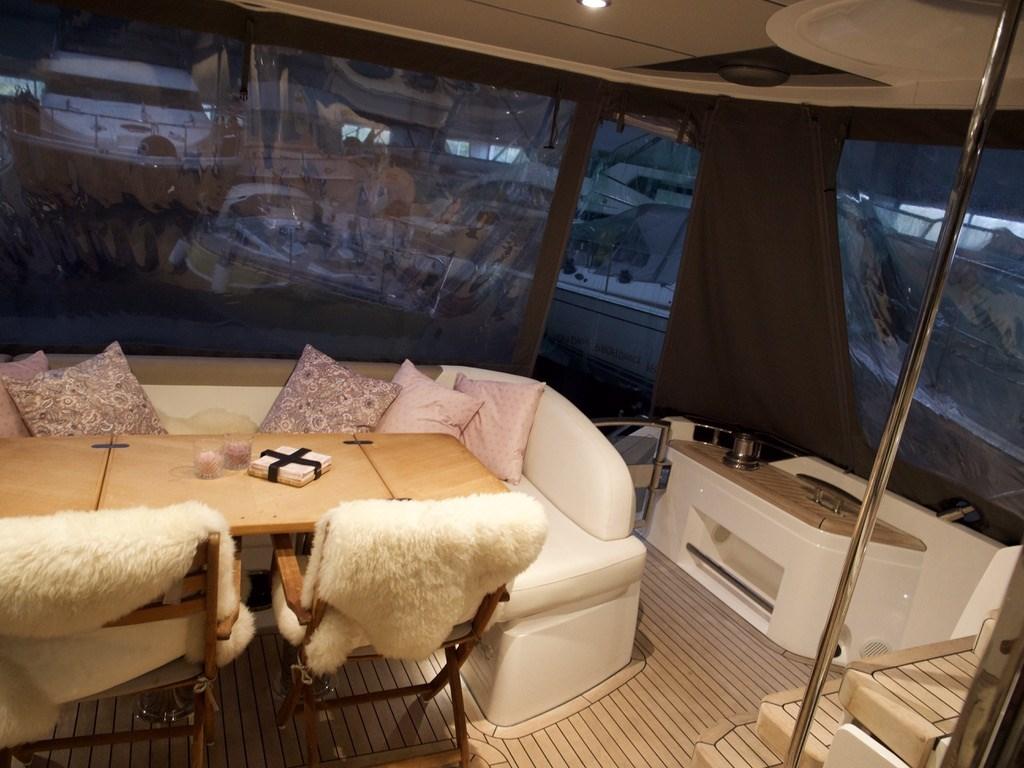 Yacht de croisière de luxe, on dirait qu’il vient tout droit du chantier. Terrasse sécurisée, salon confortable et cuisine moderne ouvrant sur le pont arrière.
