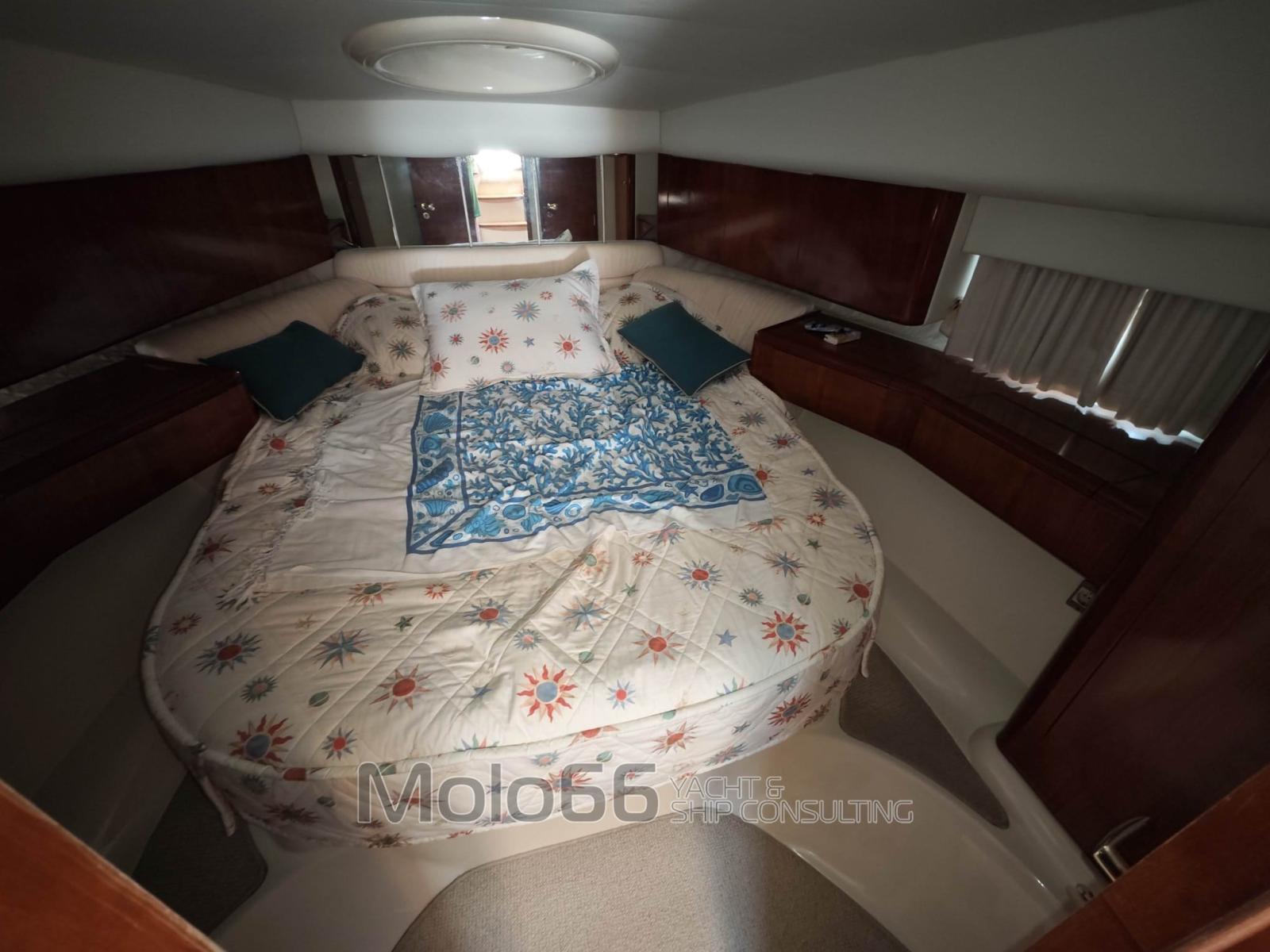 Alarme moteur, Alarme de pompe de cale, Eau sous pression, Douche de cockpit, Double barre à roue, Phare de poursuite, Flaps hydrauliques, Bossoirs pour annexe, Extincteur(s) fixe(s), Plateforme arrière, Pompe de cale automatique, Porte latérale, Prise de quai, Onduleur, Rollbar, Guindeau électrique, Echelle de bain, table de cockpit, Table pliante de salon, Corne.