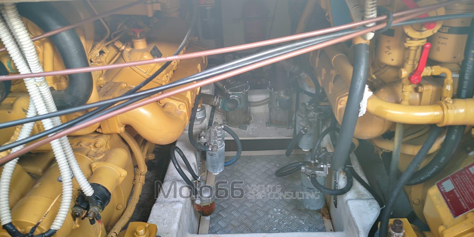 Bateau en bon état, propulsé par deux moteurs Caterpillar 3208 de 430 CV - 1 100 heures de moteur. Faible consommation (environ 70 l/h) et grande fiabilité. Double réservoir de carburant en acier inoxydable, 1 800 litres hors tout - Eau 800 litres. Le bateau a été conçu pour permettre aux personnes à mobilité réduite de l’utiliser. Pont principal avec grand espace de vie avec porte coulissante ouvrant sur le cockpit, cuisine intérieure rétractable et pilotage ; Pont inférieur, propriétaire/invités, avec : cabine principale et salle de bain privée à l’avant, chambre double avec lits plats, une autre chambre double avec lits superposés, salle de bain et, à l’arrière, cabine d’équipage avec salle de bain. FLY aux dimensions généreuses, avec trois (nouveaux) sièges, un bain de soleil et un nouvel auvent en acier inoxydable. La passerelle a été agrandie et l’accès au pont inférieur, aux cabines et aux services a également été adapté, une échelle hydraulique pouvant être transformée en surface hydraulique. Idéal pour les croisières, les charters ou les visites touristiques. Complet avec tout l’équipement de sécurité. Refit esthétique complet 2021 + Batteries complètes en option. Nouveaux échappements, câbles de commande - onduleur et accélérateurs - Fly et intérieur, volets hydrauliques complets et pilote automatique, année 2023. Lignes d’arbres 2021. Groupe électrogène 220V - 4,5 Kw - Dinamyca Ancrage augmenté 30kg - Mise à niveau des lumières LED dans tous les environnements.
