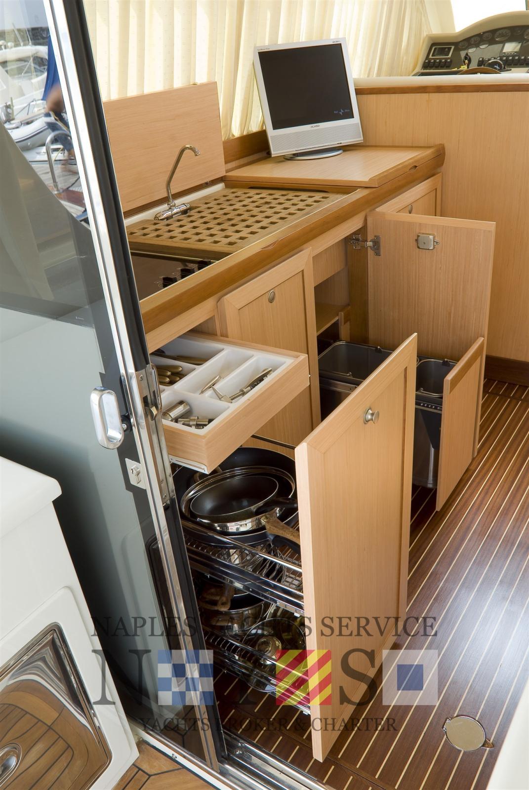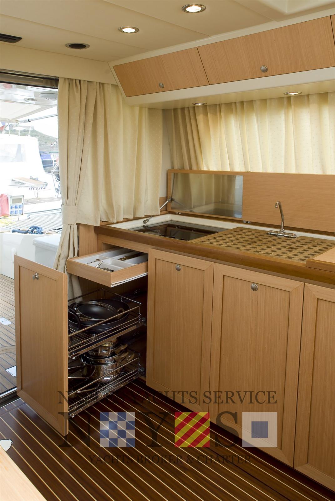 Eau sous pression, Douche de cockpit, Flaps hydrauliques, Éclairage de courtoisie, Passerelle, Plateforme arrière, Pompe de cale automatique, Pompe de cale manuelle, Onduleur, Guindeau électrique, Echelle de bain.