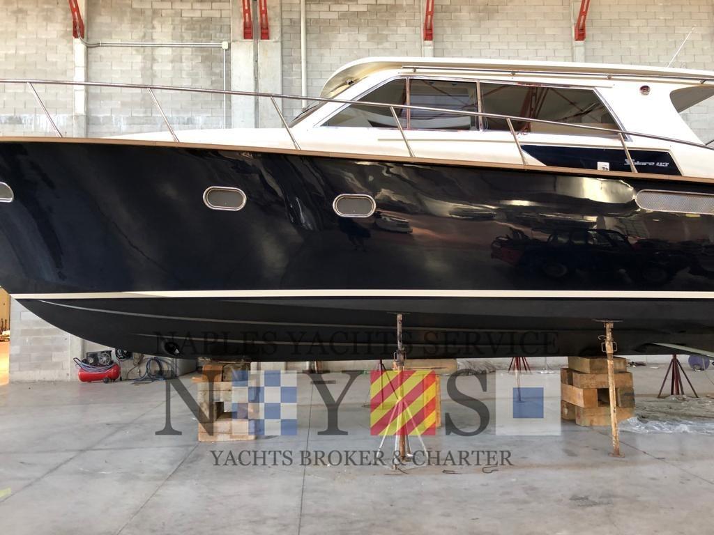 Le Solare 43 est une coque aux lignes sobres, mais fortement personnelle, équipée d’une superstructure architecturalement légère, mais qui a des volumes importants. Le principe qui a inspiré cette ligne de homard est né d’une analyse approfondie du marché qui a fourni une série de commentaires fondamentaux au chantier naval de Viareggio. Les mascons d’étrave, les murs et, par conséquent, l’impavesate du cockpit font référence aux bateaux de travail que nous traversons dans différentes zones de l’Atlantique Nord pour la pêche au homard. Le résultat est un design vaguement rétro pour ce Solare 46 qui, en plus de satisfaire le goût esthétique de ceux qui préfèrent les formes intemporelles des bateaux professionnels, est particulièrement protecteur des passagers