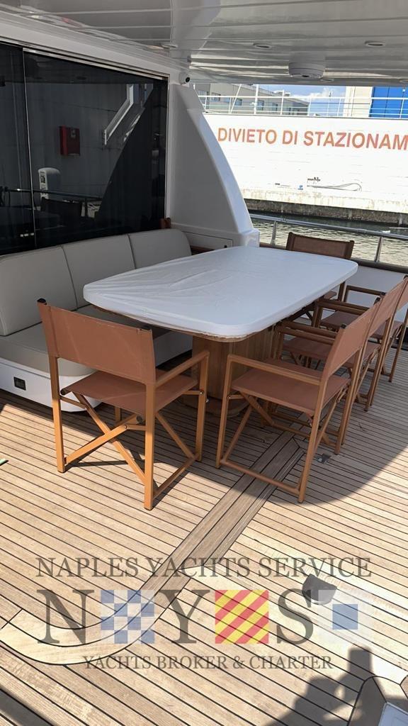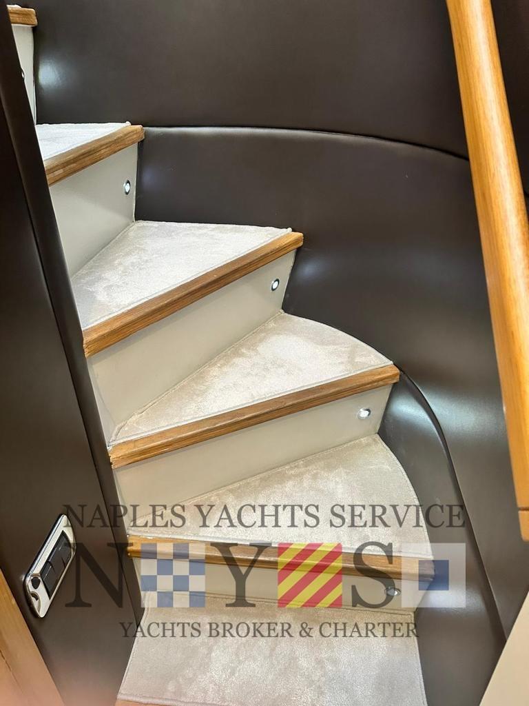 Alarme moteur, Alarme de pompe de cale, Eau sous pression, Douche de cockpit, Double barre à roue, Flaps hydrauliques, Lavage de chaine, Éclairage de courtoisie, Spots sous-marins, Passerelle, Plateforme arrière, Pompe de cale automatique, Cockpit en teck, Prise de quai, Onduleur, Guindeau électrique, Echelle de bain, table de cockpit, Winch électrique avant.