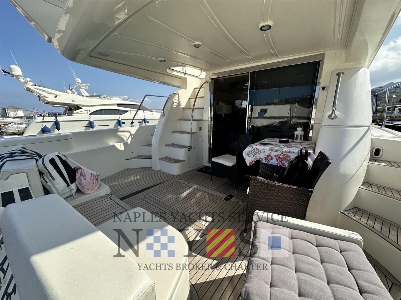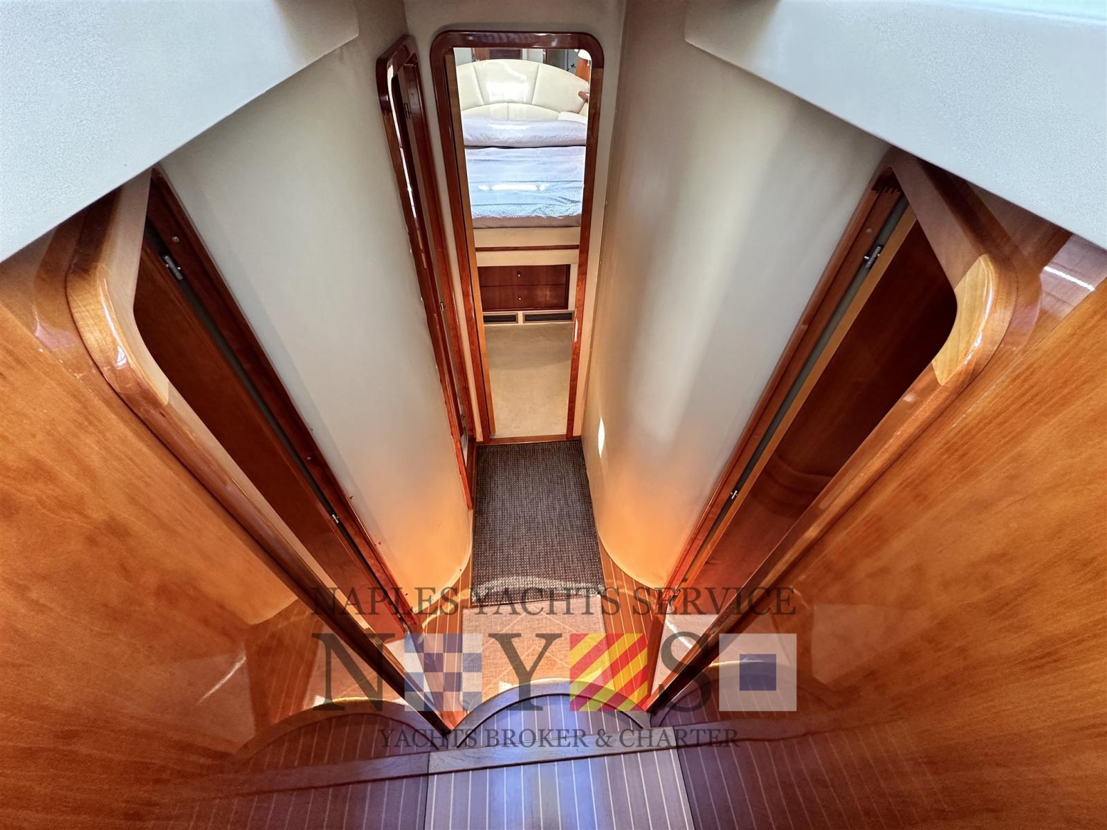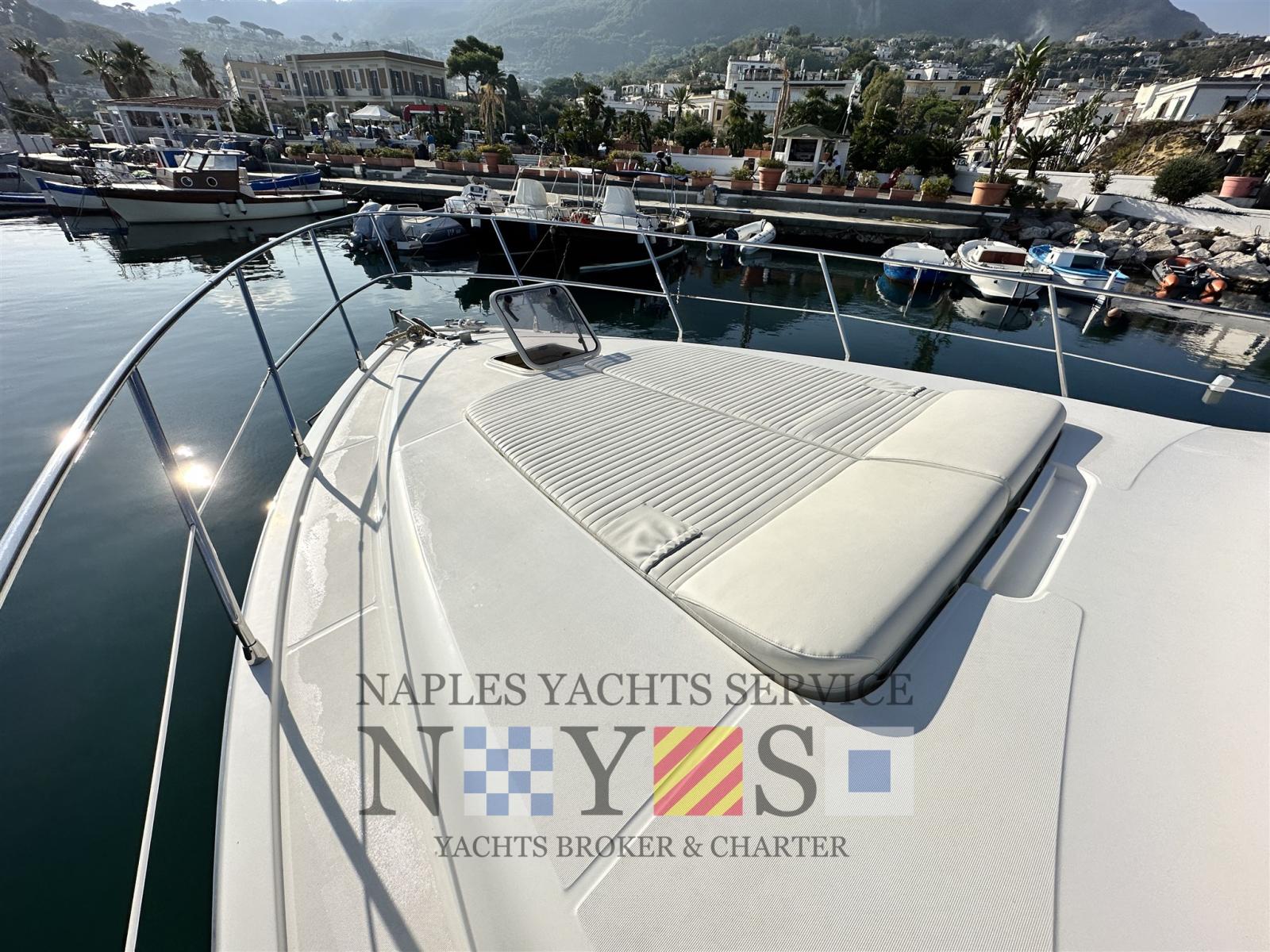 Alarme moteur, Alarme de pompe de cale, Eau sous pression, Douche de cockpit, Propulseur de poupe (Vetus), Propulseur d'étrave (Vetus), Flaps hydrauliques, Éclairage de courtoisie, Plateforme arrière, Pompe de cale automatique, Cockpit en teck, Prise de quai, Onduleur, Rollbar (sul Fly), Guindeau électrique, Echelle de bain, table de cockpit, Filières avec sortie latèrale.