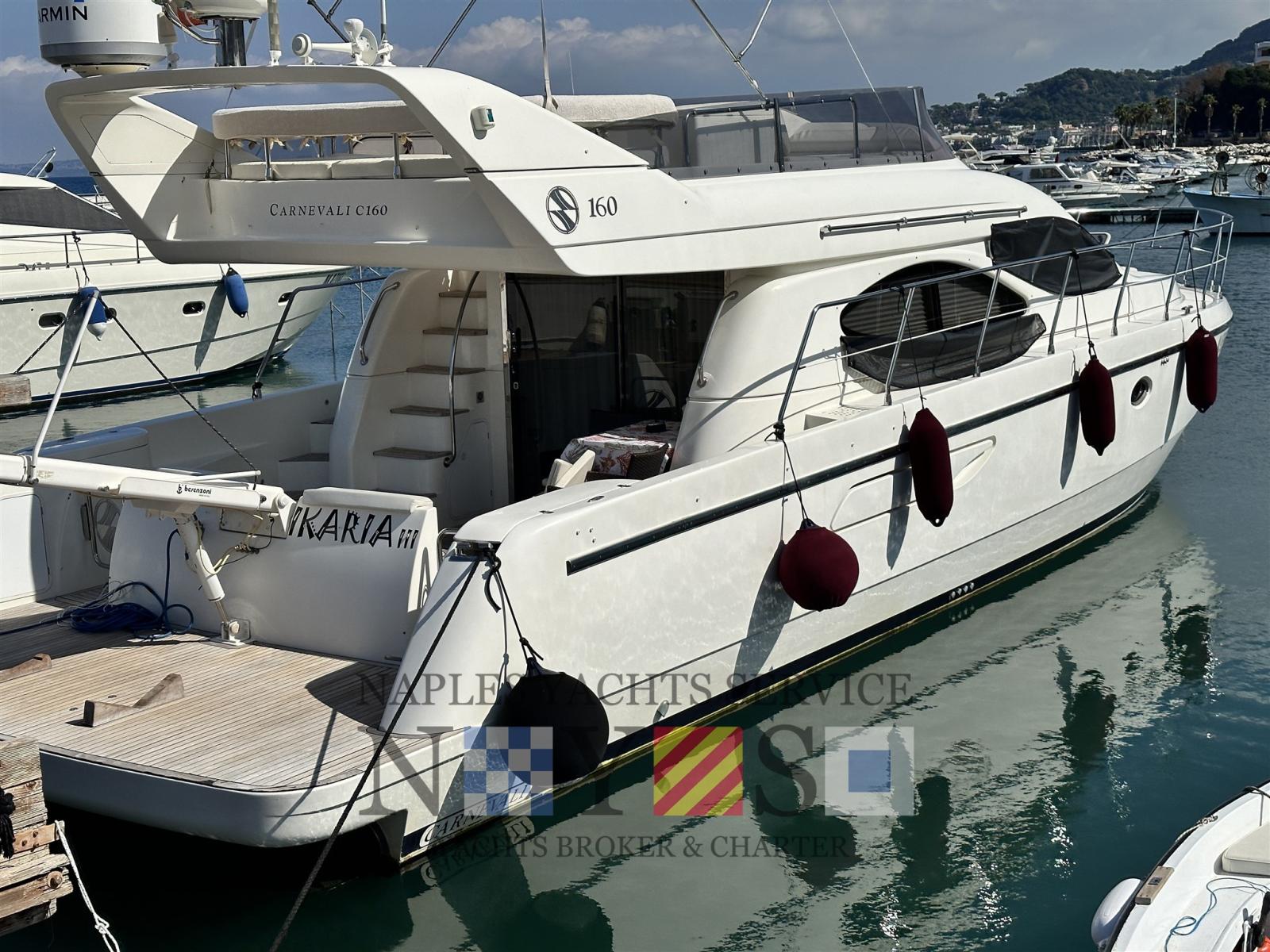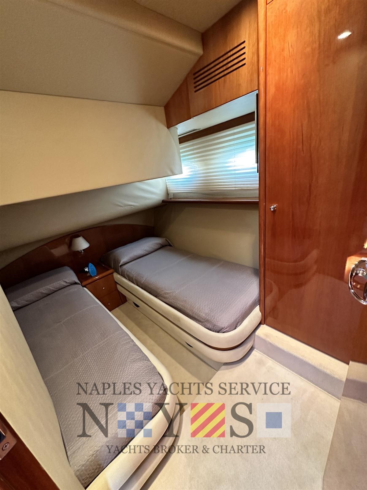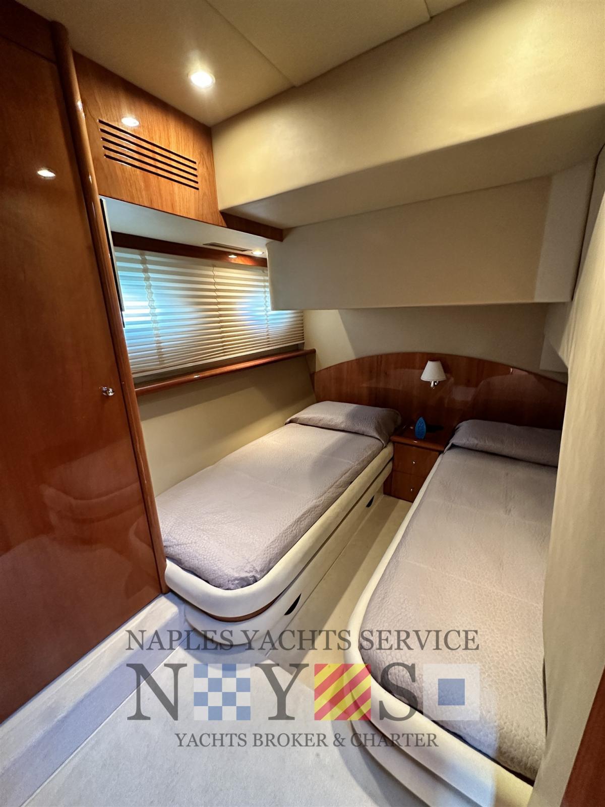 Alarme moteur, Alarme de pompe de cale, Eau sous pression, Douche de cockpit, Propulseur de poupe (Vetus), Propulseur d'étrave (Vetus), Flaps hydrauliques, Éclairage de courtoisie, Plateforme arrière, Pompe de cale automatique, Cockpit en teck, Prise de quai, Onduleur, Rollbar (sul Fly), Guindeau électrique, Echelle de bain, table de cockpit, Filières avec sortie latèrale.