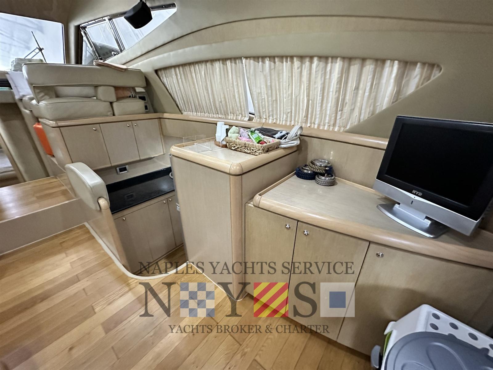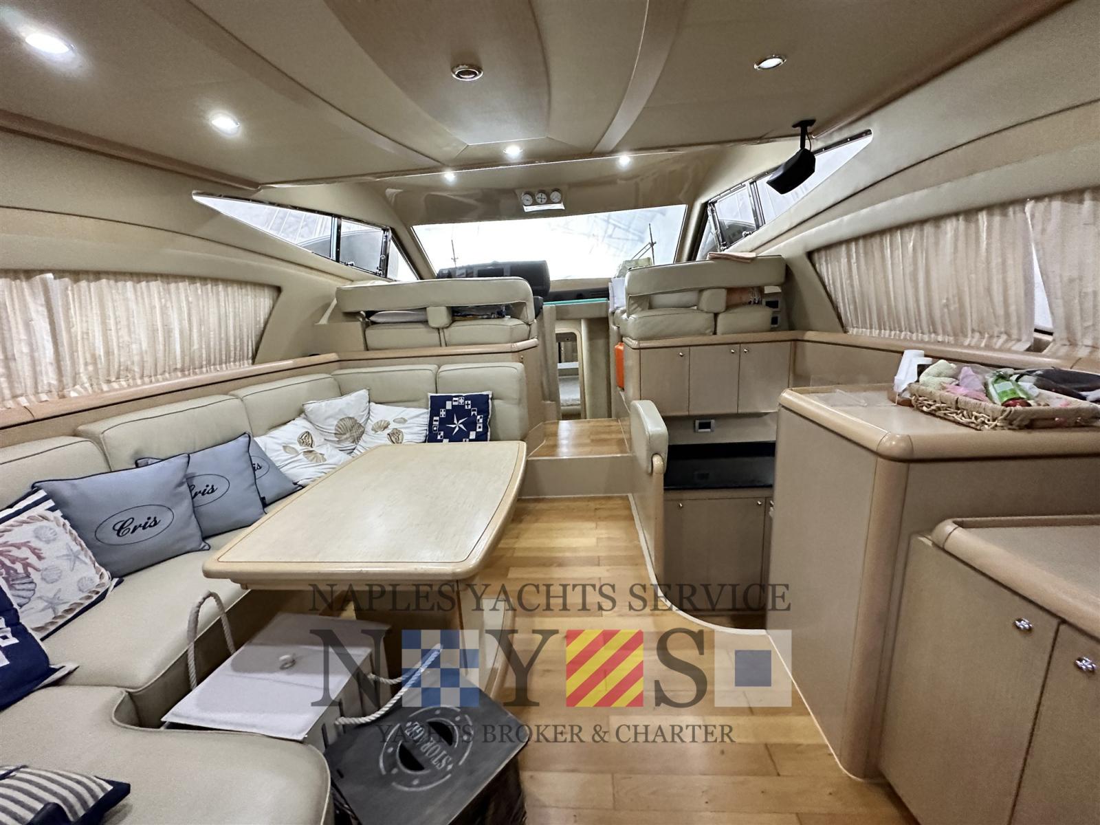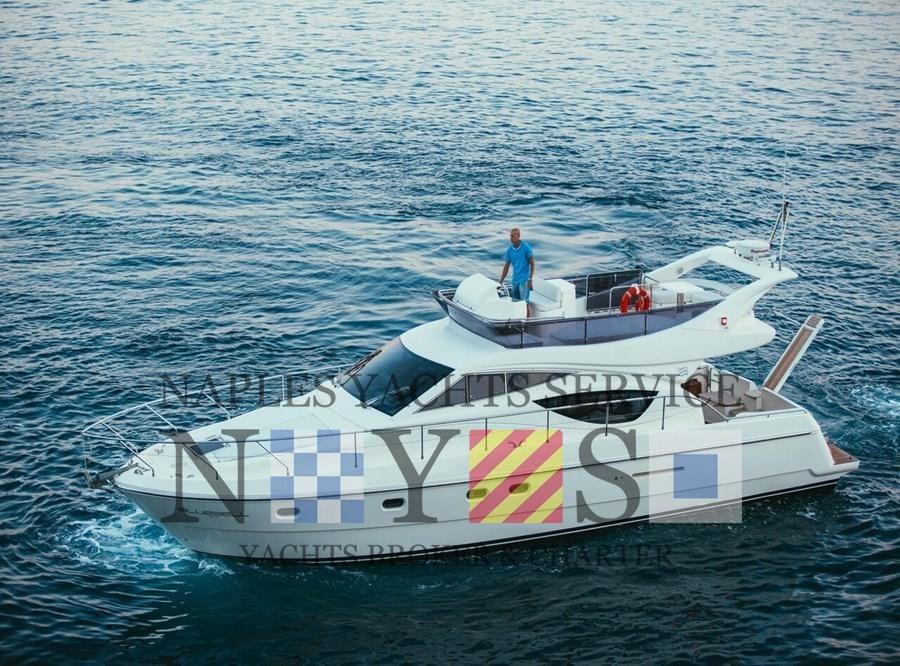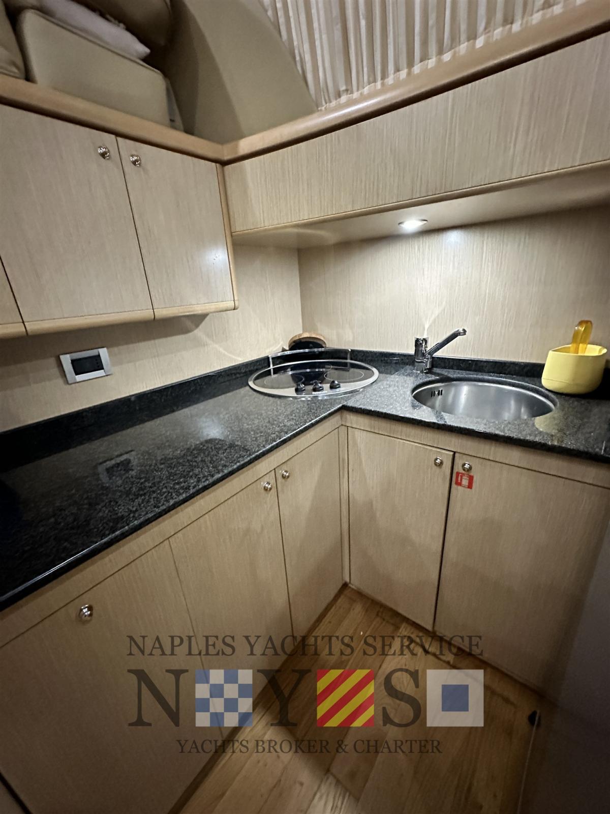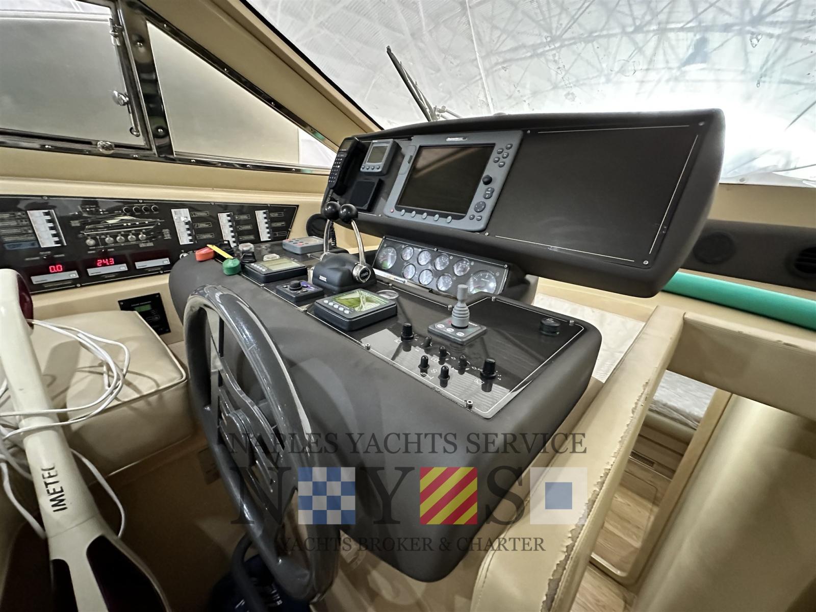 Alarme moteur, Alarme de pompe de cale, Eau sous pression, Double barre à roue, Flaps hydrauliques (N°2), Éclairage de courtoisie, Passerelle (Besenzoni Colore BIANCO), Plateforme arrière, Pompe de cale automatique, Prise de quai, Onduleur, Guindeau électrique, Echelle de bain.