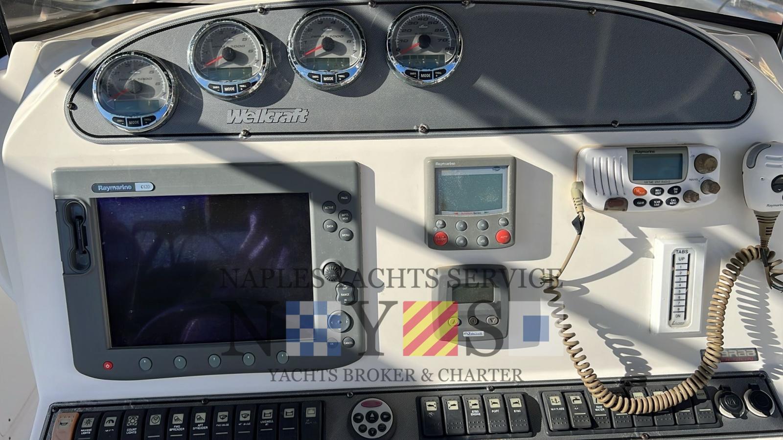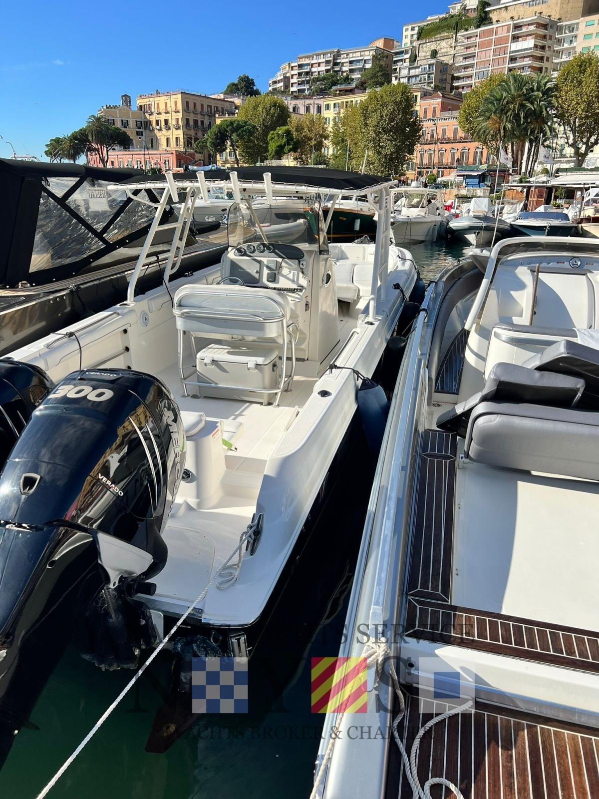 Alarme moteur, Ancre (Danforth), Eau sous pression, 4 Batteries, Phares fixes arrière, Flaps électriques, Indicateurs de flaps, 4 Éclairage de courtoisie, Pompe de cale automatique, Prise de quai, Onduleur, Guindeau électrique, Echelle de bain, Corne, T-Top.