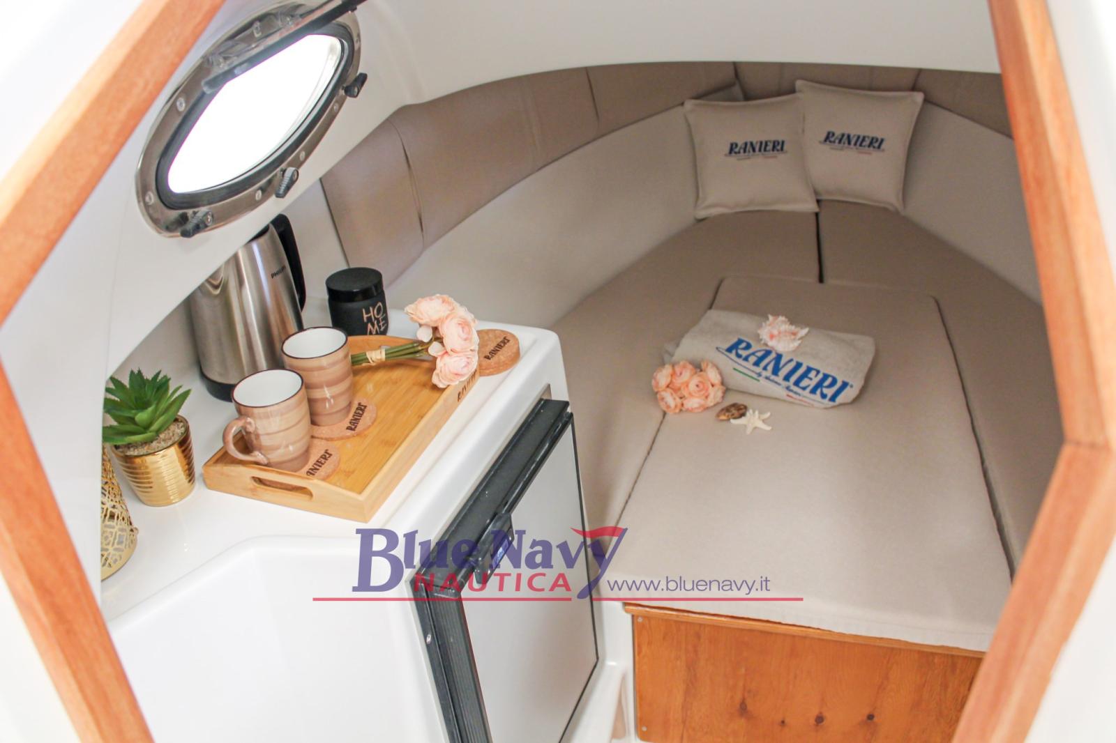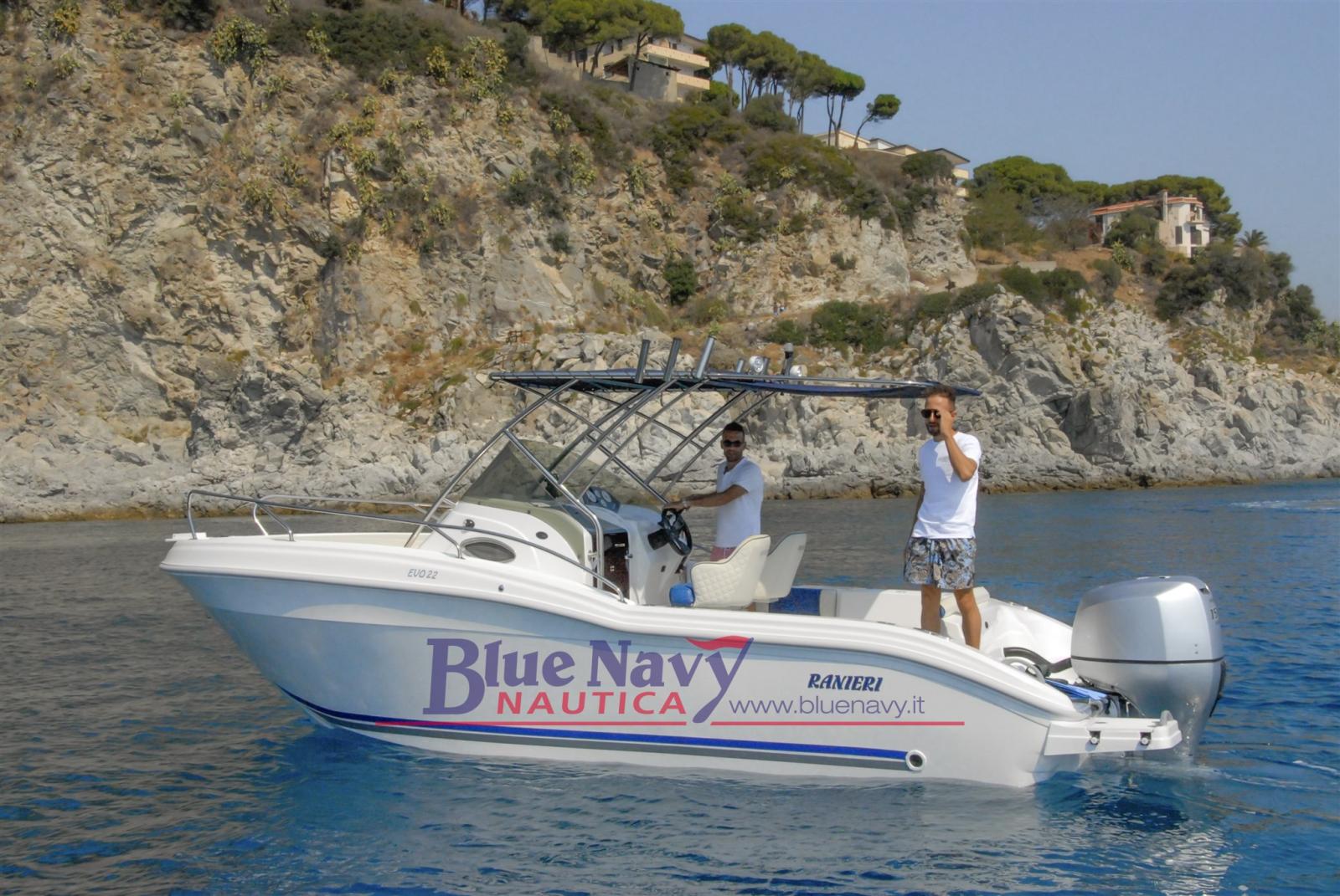 Caractéristiques techniques RANIERI EVO22 : longueur : 6,75 m ; largeur : 2,45 m ; PV max : 250 ch ; Poids : 1100 kg ; Capacité d’accueil : 9 ; Couchages : 2 ; Réservoir : 240 lt ; réservoir; Eau : 90 lt ; Homologation : CE-C.