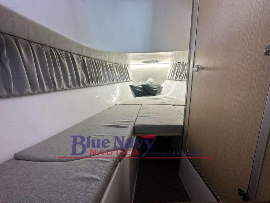 Une cabine confortable a été créée avec 2 lits et une salle de bain séparée avec lavabo, toilettes (électriques ou chimiques) et douchette. Lorsqu’elle n’est pas utilisée pour se détendre, la cabine se transforme en un espace de rangement pratique pour l’équipement.