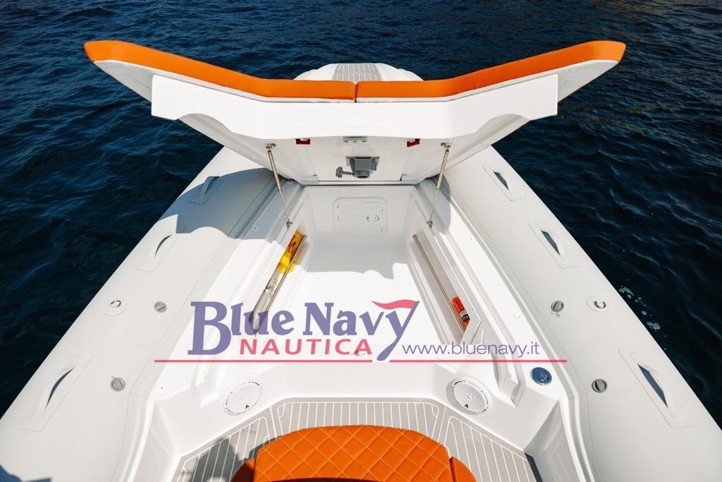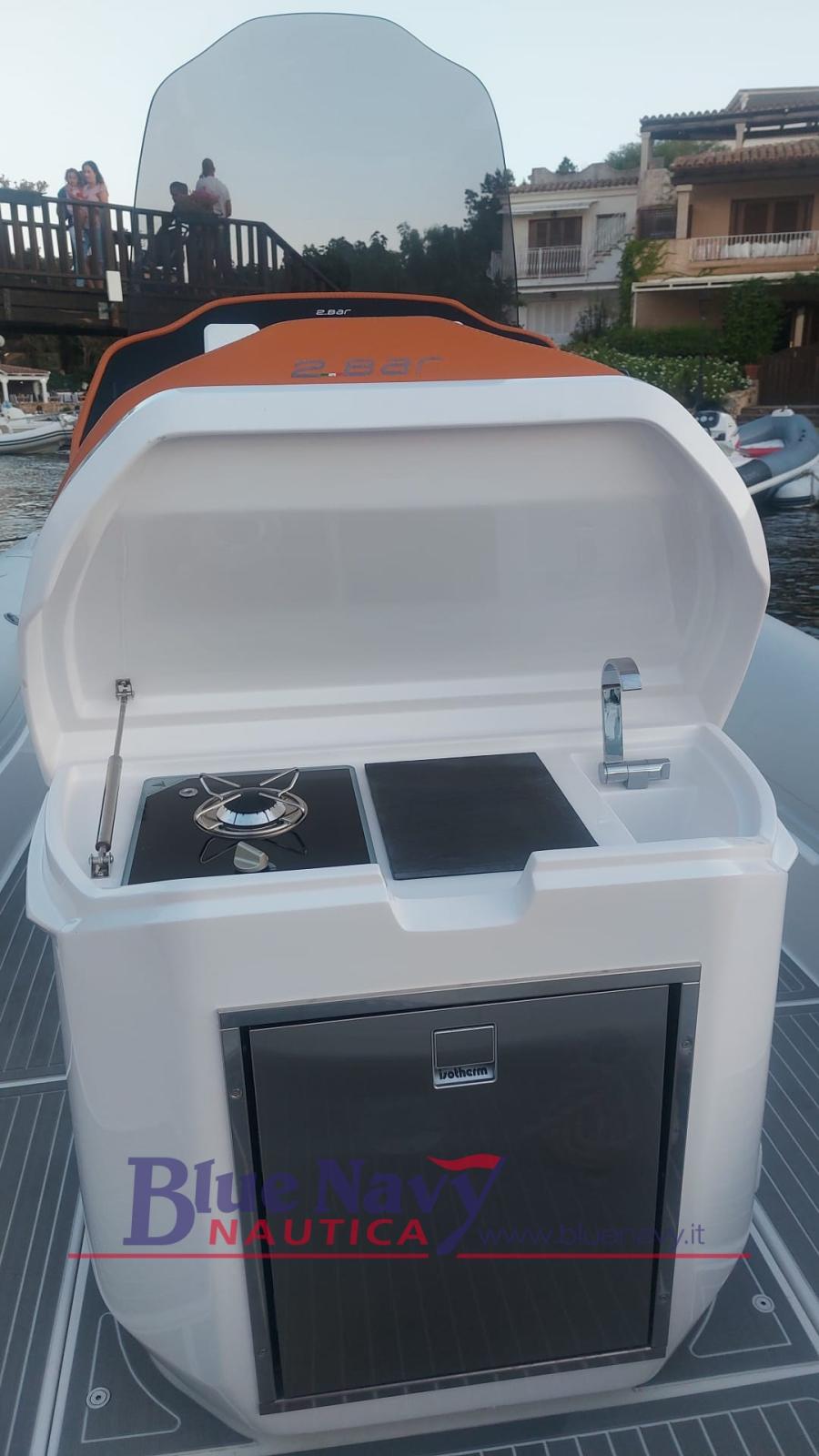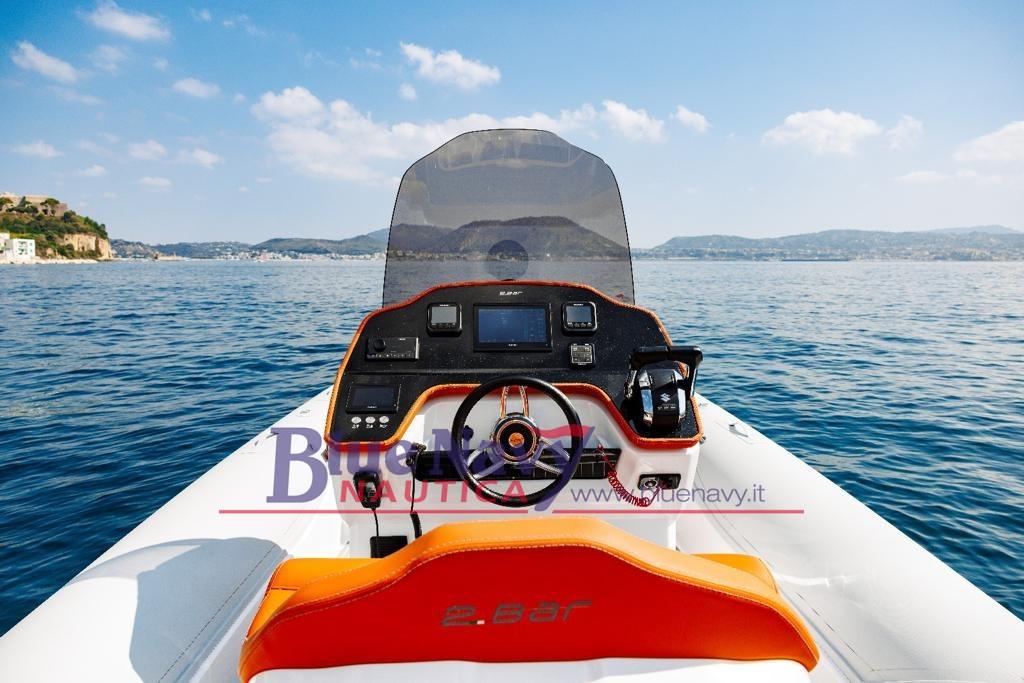 Une nouvelle entrée du chantier naval 2BAR, développée dans le sillage du succès des modèles précédents, ce dériveur se caractérise par de grands espaces et de nombreux accessoires qui le rendent idéal pour les voyages plus longs : équipé d’une petite salle de bain à l’intérieur de la console, il est possible d’ajouter un réfrigérateur pour vivre la mer dans un maximum de confort. L’annexe dispose également d’un coffre à proue extrêmement spacieux pour ranger tout équipement ou outil utile pour les journées hors de la ville. La poupe, tout aussi confortable et allongée, offre la possibilité de différentes configurations : du canapé avec table au bain de soleil unique capable d’accueillir jusqu’à 4 passagers.