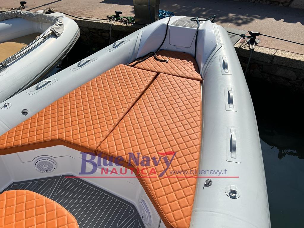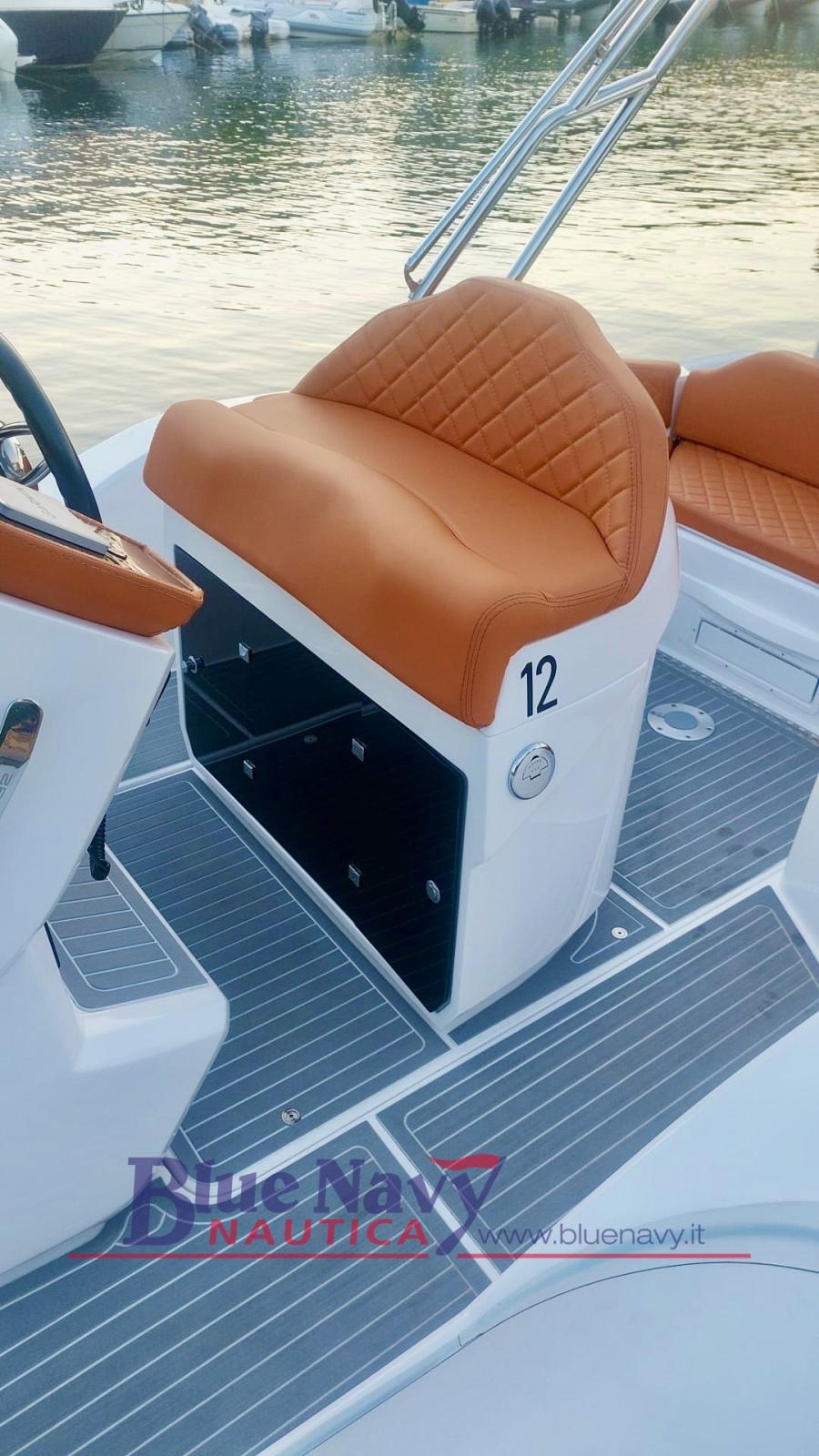 Équipement standard : structure de coque en PRV | Tubulaires en néoprène Hypalon ORCA | Console complète | Poste de pilotage complet et personnalisable | Coussins complets à cellules fermées | Croupes de remorquage et d’amarrage | Casiers à arc avec poches de rangement | Rouleau en PRV avec bornes d’amarrage | Tableau électrique | Plates-formes arrière en PRV | Échelle de poupe en acier inoxydable | Volant | Pompe de cale | Déconnexion de la batterie | Treuil et ancre | Vestiaire sous console | Console avant | Armoire avec préparation de cuisine | Direction hydraulique (pompe uniquement) | Table arrière | Taquets d’amarrage arrière | Feux de navigation à LED | Boussole | Trompette | Drains sur pilotis | Bain de soleil arrière avec rallonge | Dossier de siège arrière | Compartiment de rangement de la console | Tiroir à batterie 80 Ah | Pare-brise | Réservoir de carburant en polypropylène.