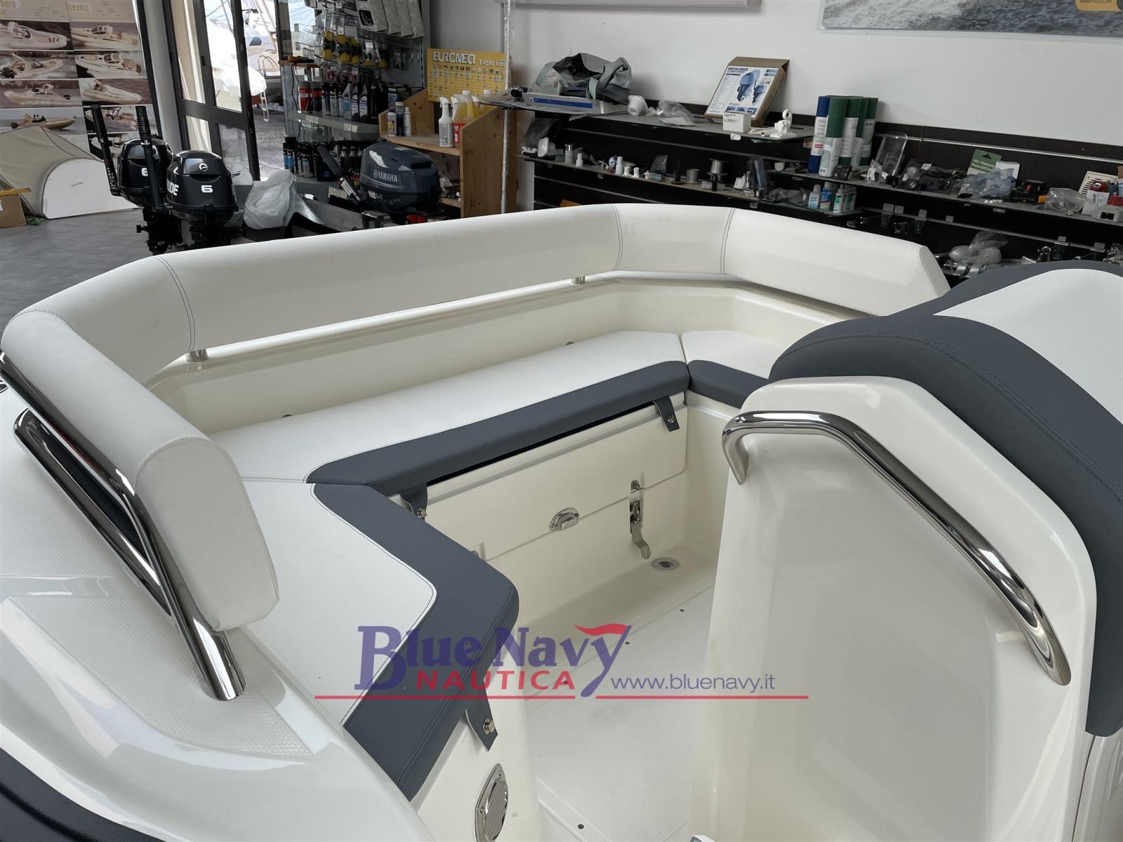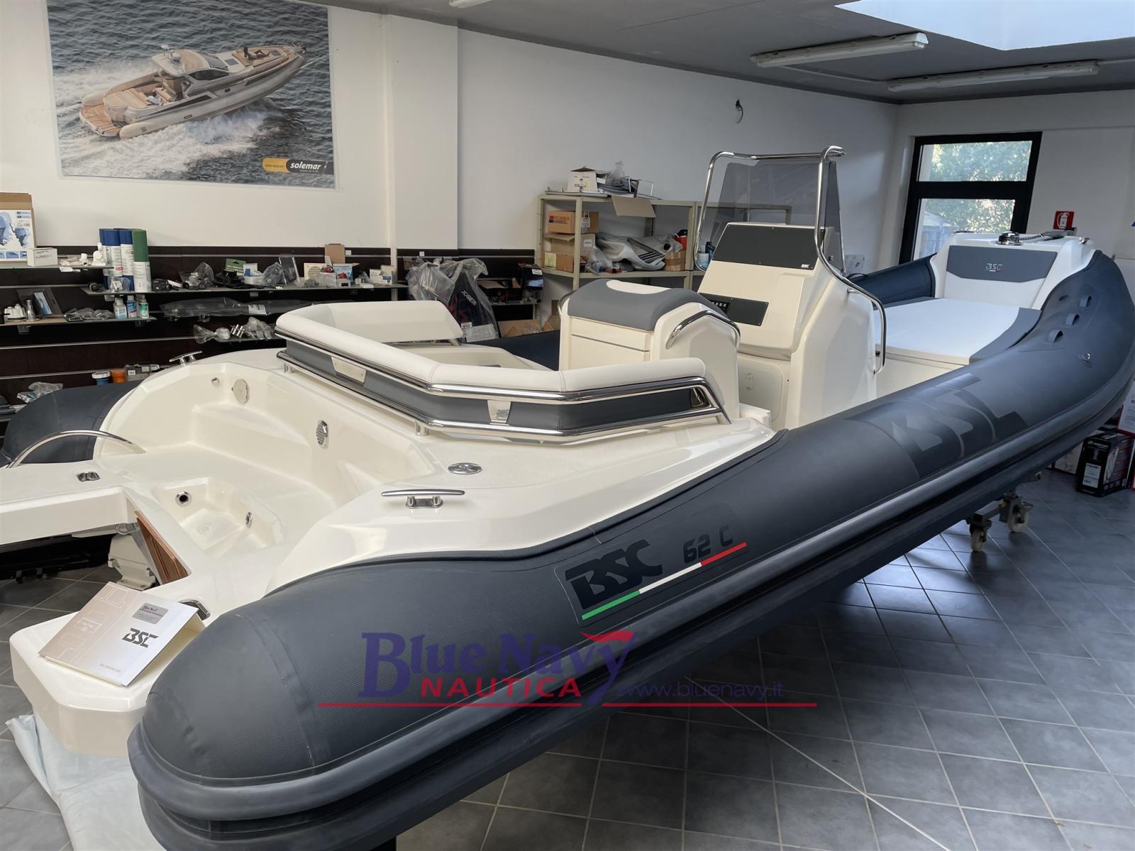 Blue Navy Nautica - distributeur officiel de BSC pour la Toscane - propose à la vente le bateau pneumatique Bsc 62 (f.t. 6,5mt), élégant, avec un aspect tubulaire harmonieux avec des finitions douces au toucher, des coussins De Luxe et un volant en cuir. Aménagement avec de grands bains de soleil à l’avant et à l’arrière pouvant accueillir jusqu’à 12 personnes. Canapé arrière confortable équipé d’un dossier enveloppant avec structure tubulaire double.