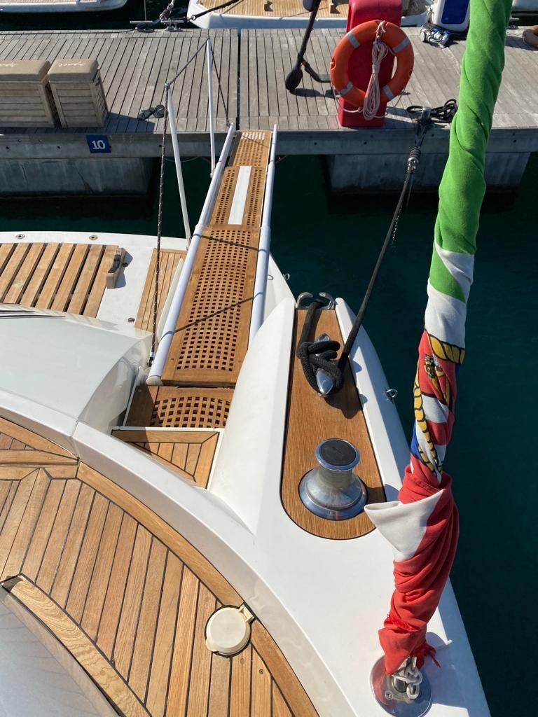 Phares fixes arrière, Spots sous-marins, Pont en teck, Winch électrique arrière.