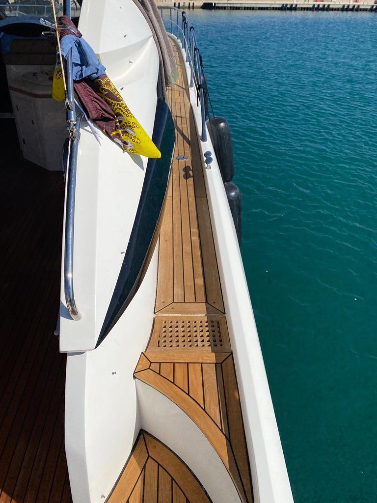 Réfection en teck des passerelles latérales, nouvelles toilettes, révision des hélices, de la timonerie et de la poucelle de la proue