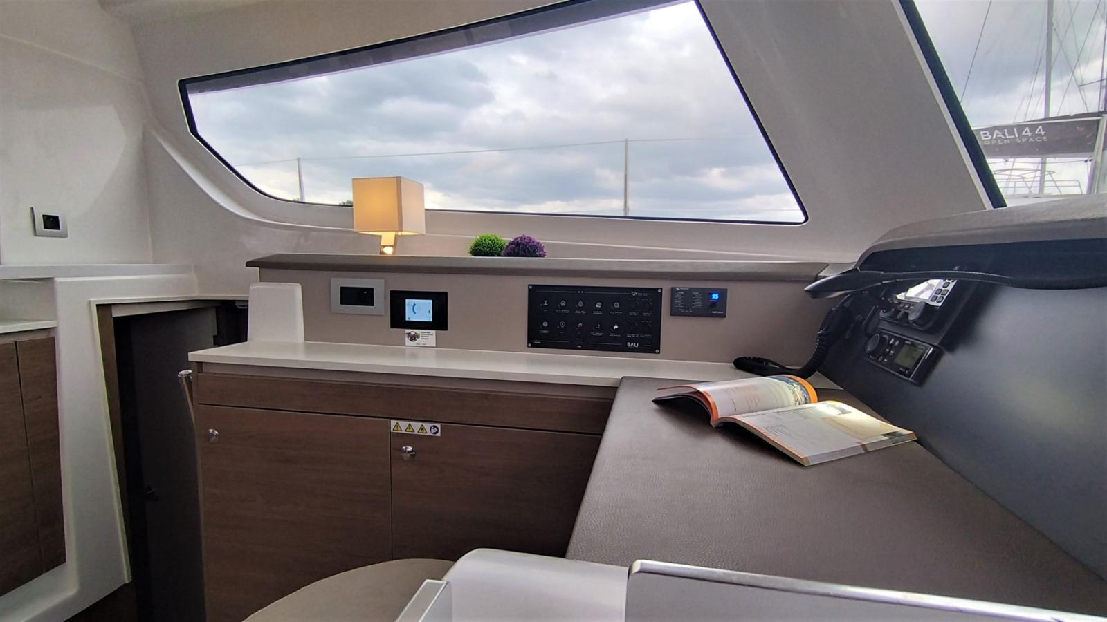 BBQ/ Grill, Ballon d'eau chaude, Gradateur de lumière, Dessalinisateur, Cuve à eaux noires, Plancher intérieur en bois, Prises interieures 12v, Prises interieures 220v, Réservoir d'eau noire, Toilettes électriques.