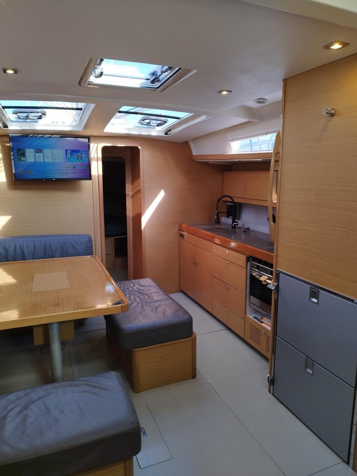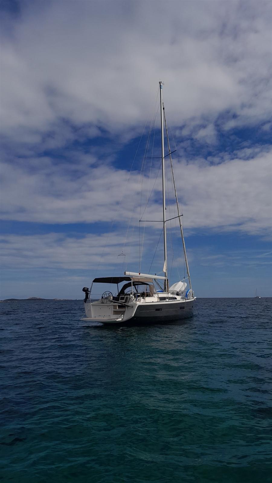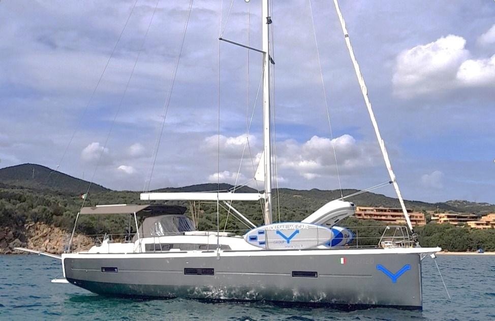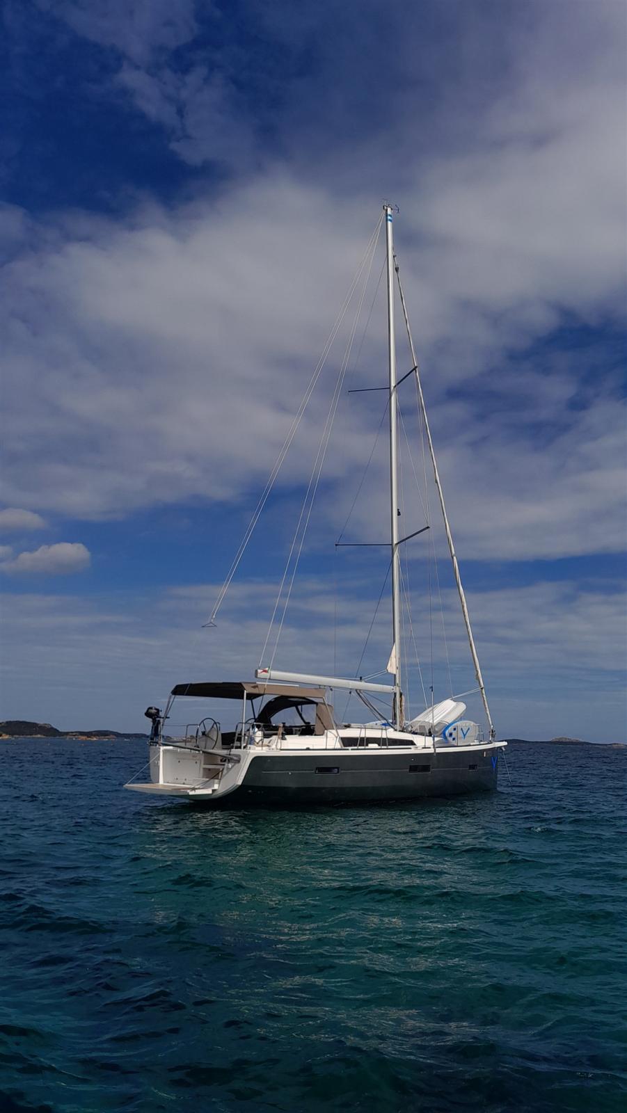 Spots sous-marins, Panneau solaire, Passerelle, Plateforme arrière, Cockpit en teck, Prise de quai, Connexion eau sous pression à quai, Guindeau électrique, Echelle de bain, Chaise support HB, table de cockpit, Annexe.