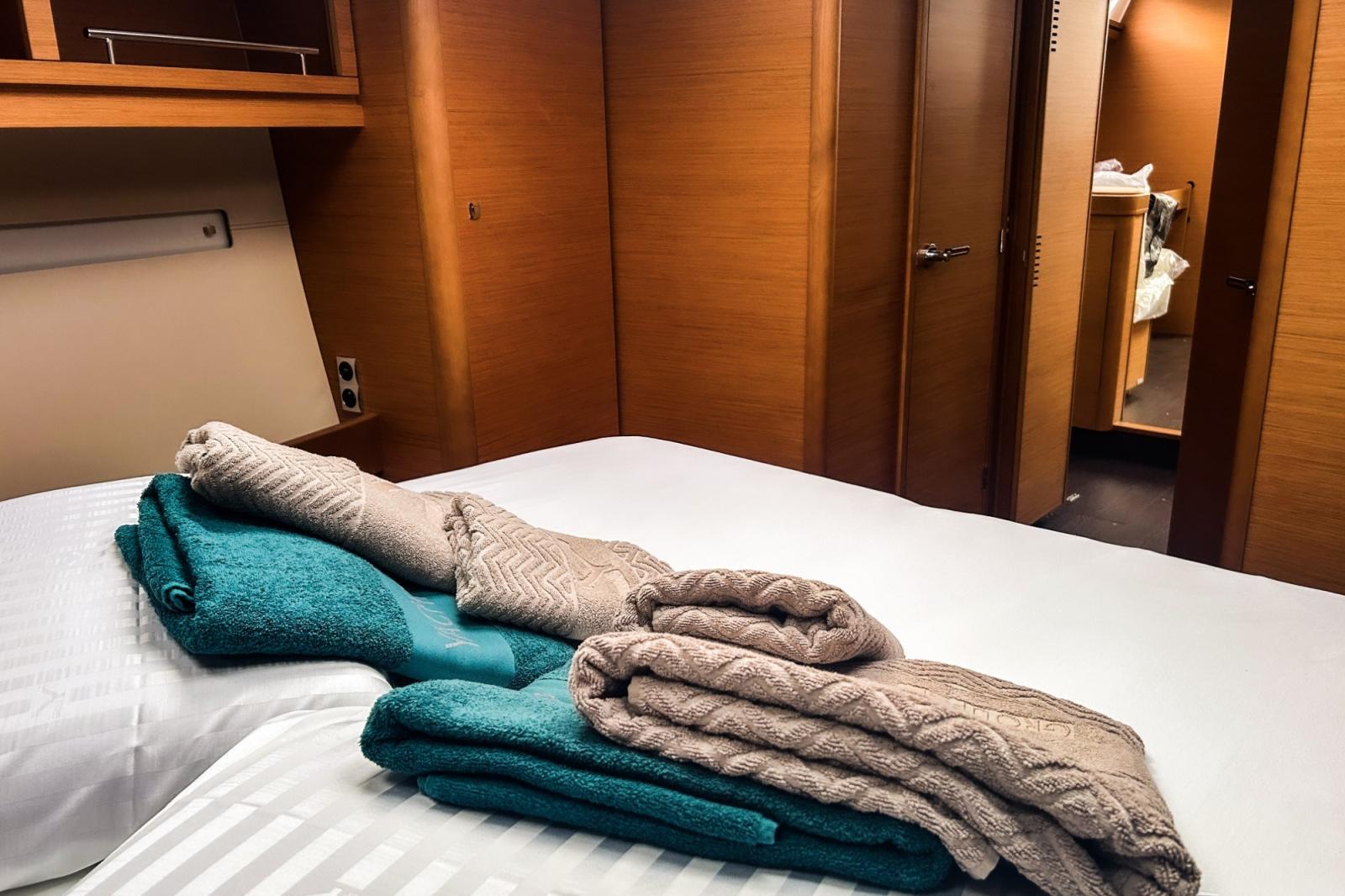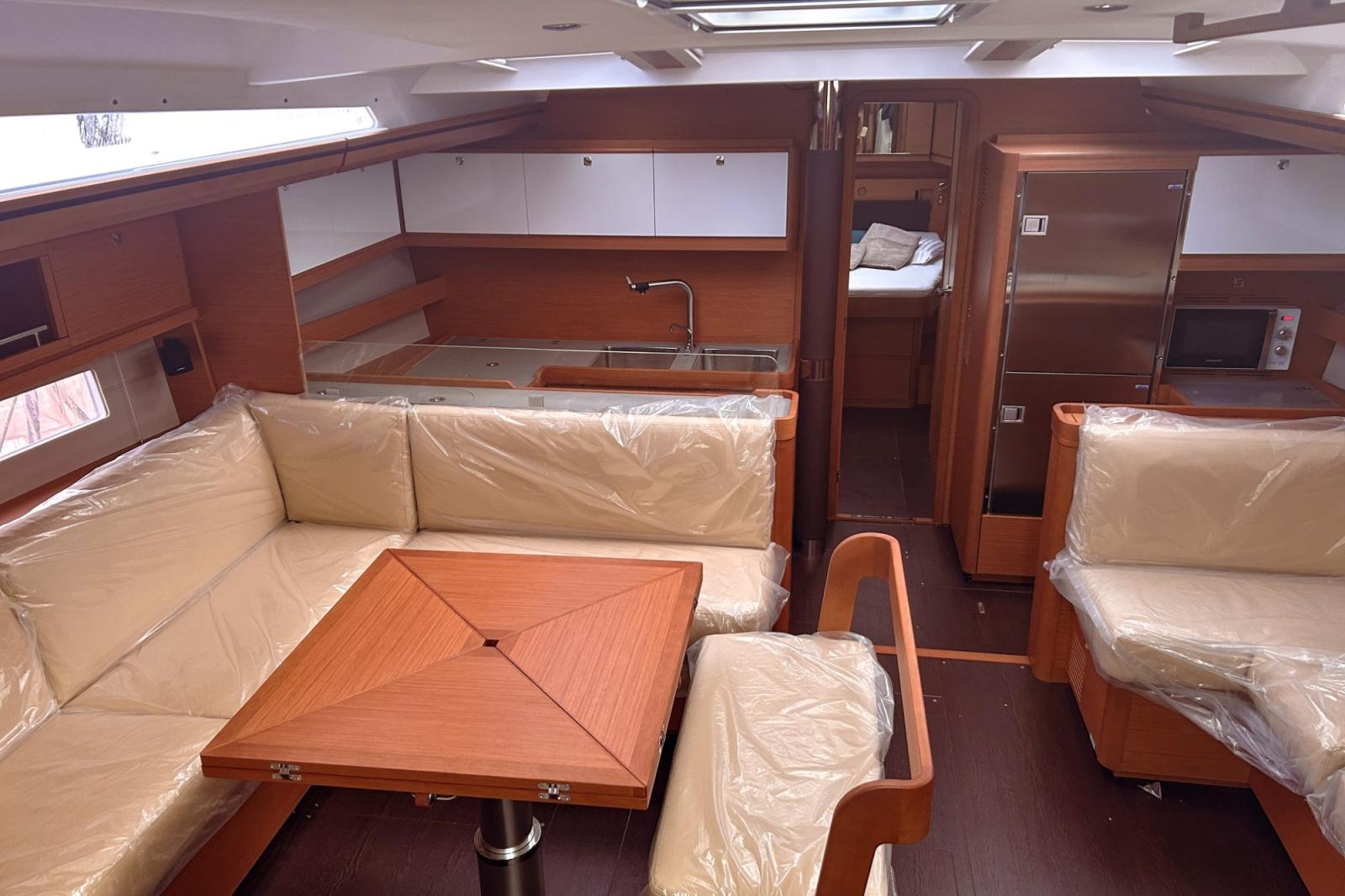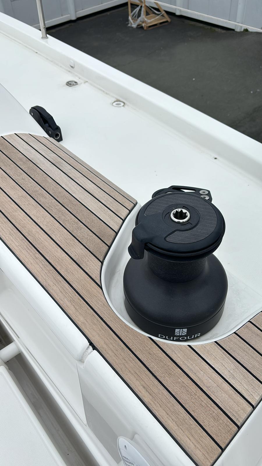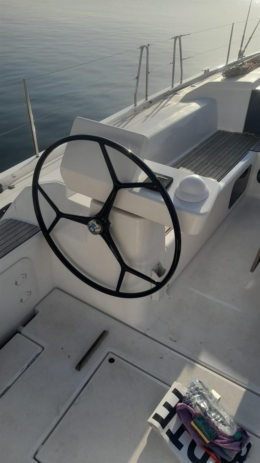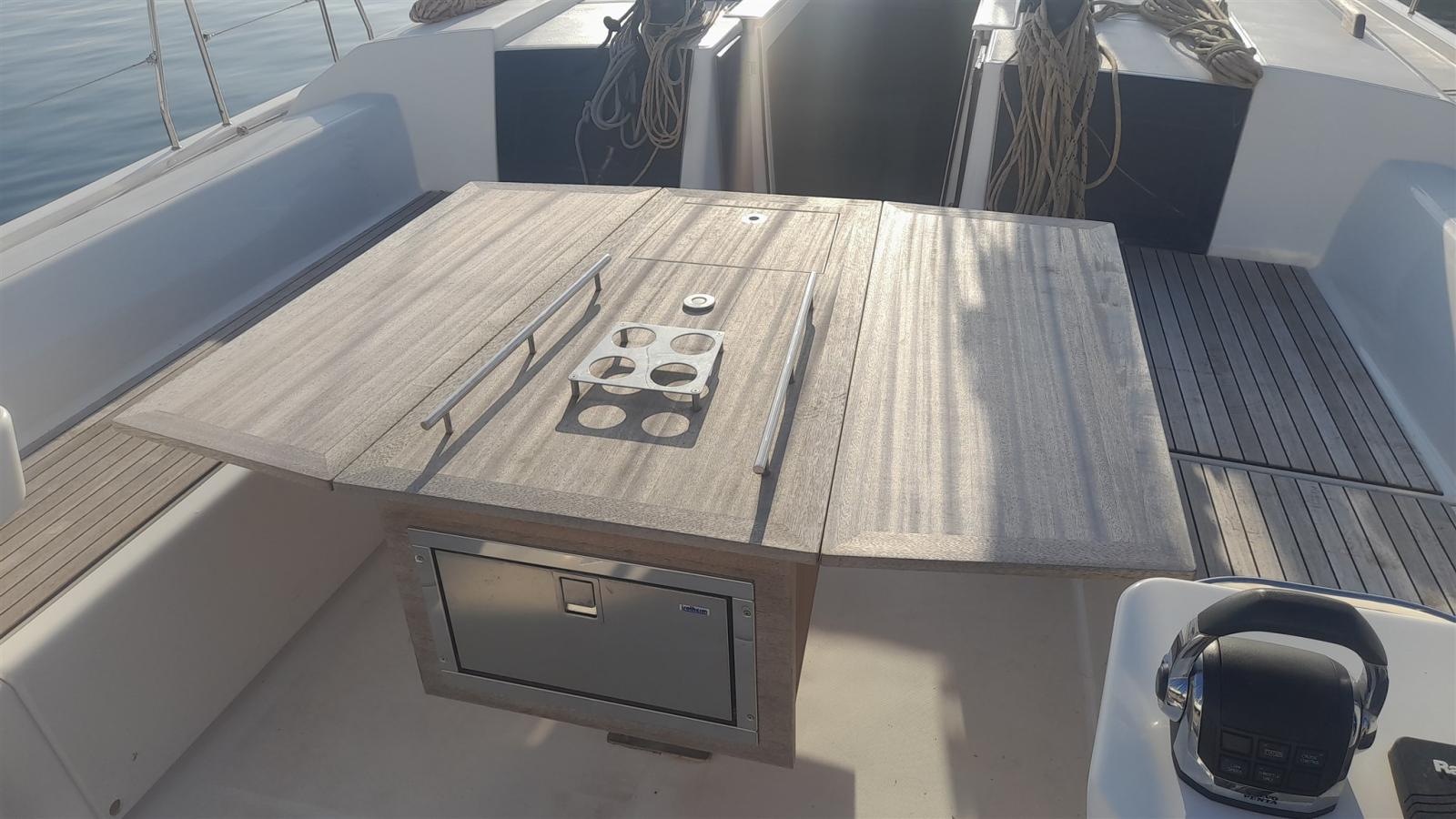 Alarme moteur, Alarme de pompe de cale, Ligne d'arbre de rechange, Eau sous pression, remorque, Douche de cockpit, Double barre à roue, Lavabo dans le cockpit, Plateforme arrière, Pompe de cale automatique, Pompe de cale manuelle, Cockpit en teck, Guindeau électrique, Echelle de bain, Chaise support HB, table de cockpit, Table pliante de salon, Filières avec sortie latèrale.