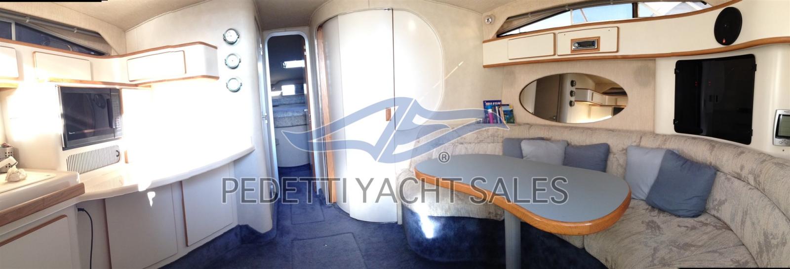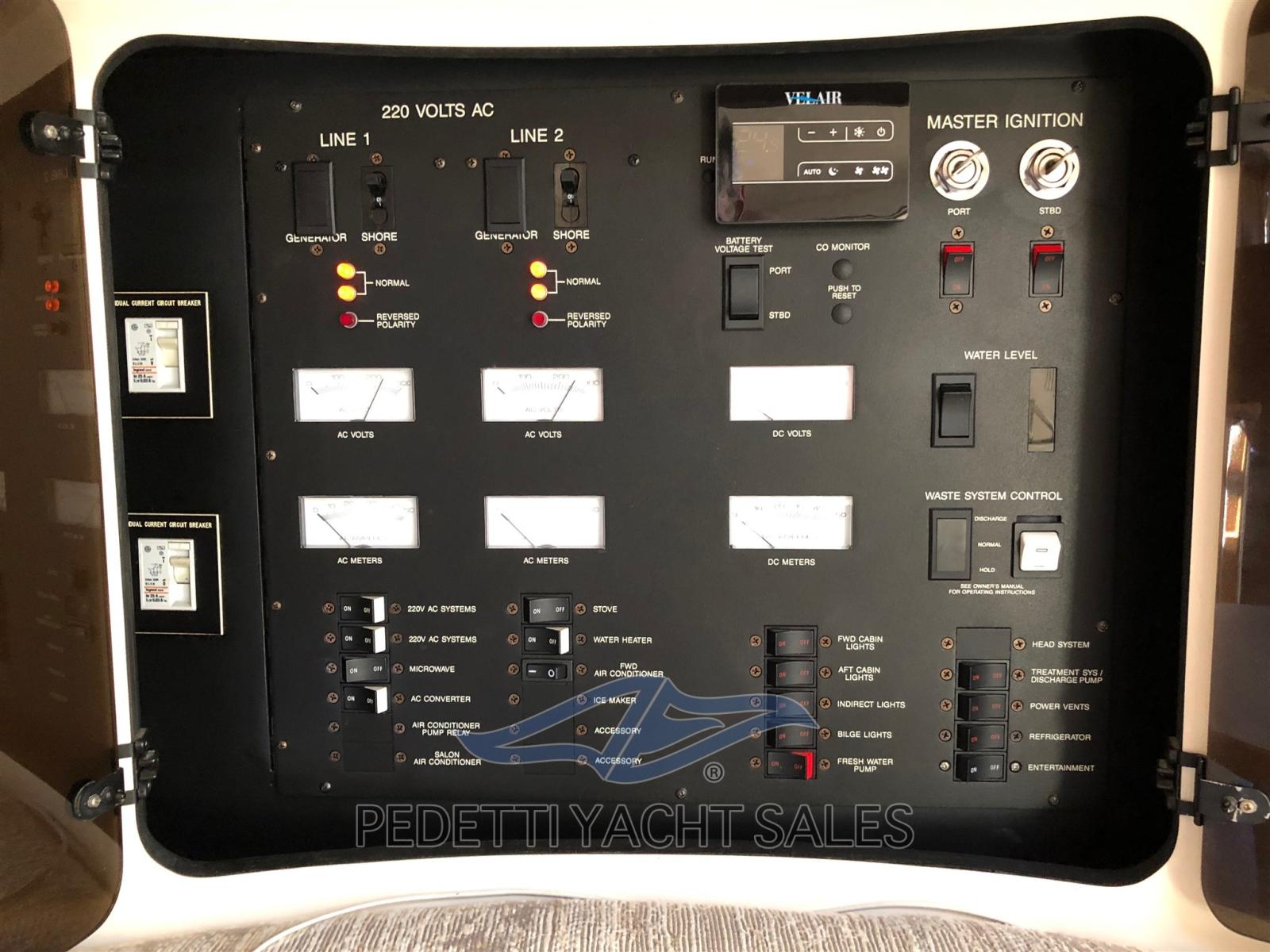 Eau sous pression, 4 Batteries, Douche de cockpit, 2 Flaps électriques, Passerelle, 2 Pompe de cale électrique, Prise de quai, Guindeau électrique, Echelle de bain, Table pliante de salon.