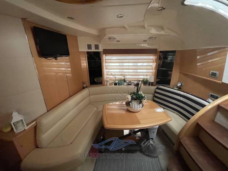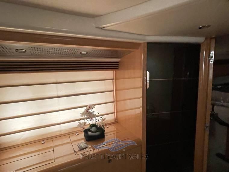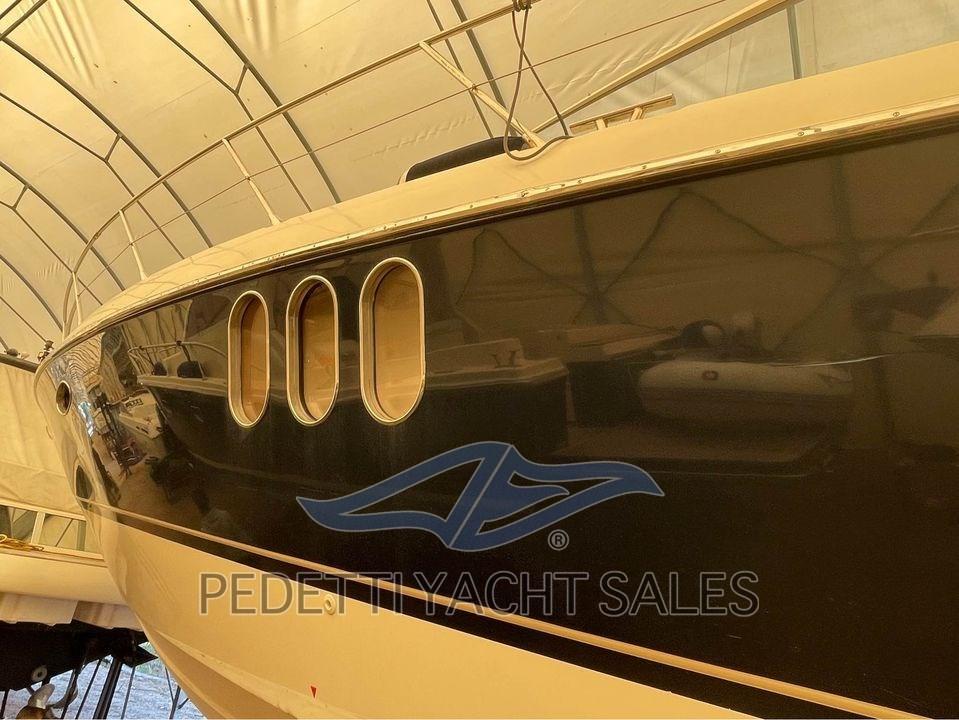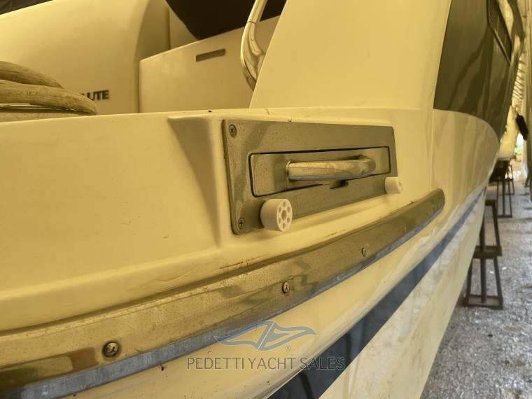 Alarme moteur, Alarme de pompe de cale, Eau sous pression, Radeau de sauvetage (x 8 persone), 2 Chargeur de batterie, Douche de cockpit, Flaps hydrauliques, Garage à annexe, Hard top, Extincteur(s) fixe(s), Indicateurs de flaps, Éclairage de courtoisie, 2 Spots sous-marins, Passerelle (idraulica a scomparsa), Plateforme arrière, Pompe de cale automatique, Pompe de cale manuelle, Connexion eau sous pression à quai, Onduleur, Guindeau électrique, Echelle de bain, table de cockpit.