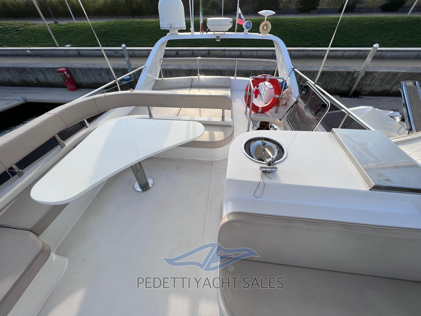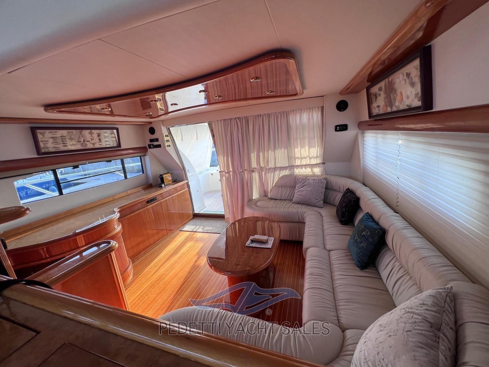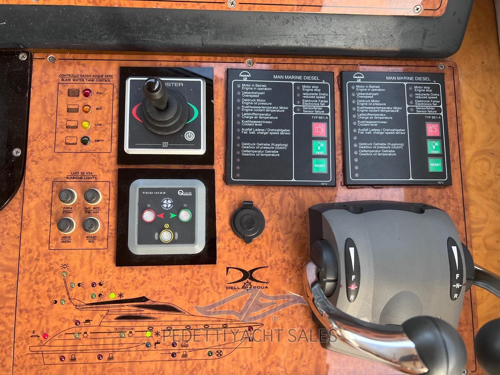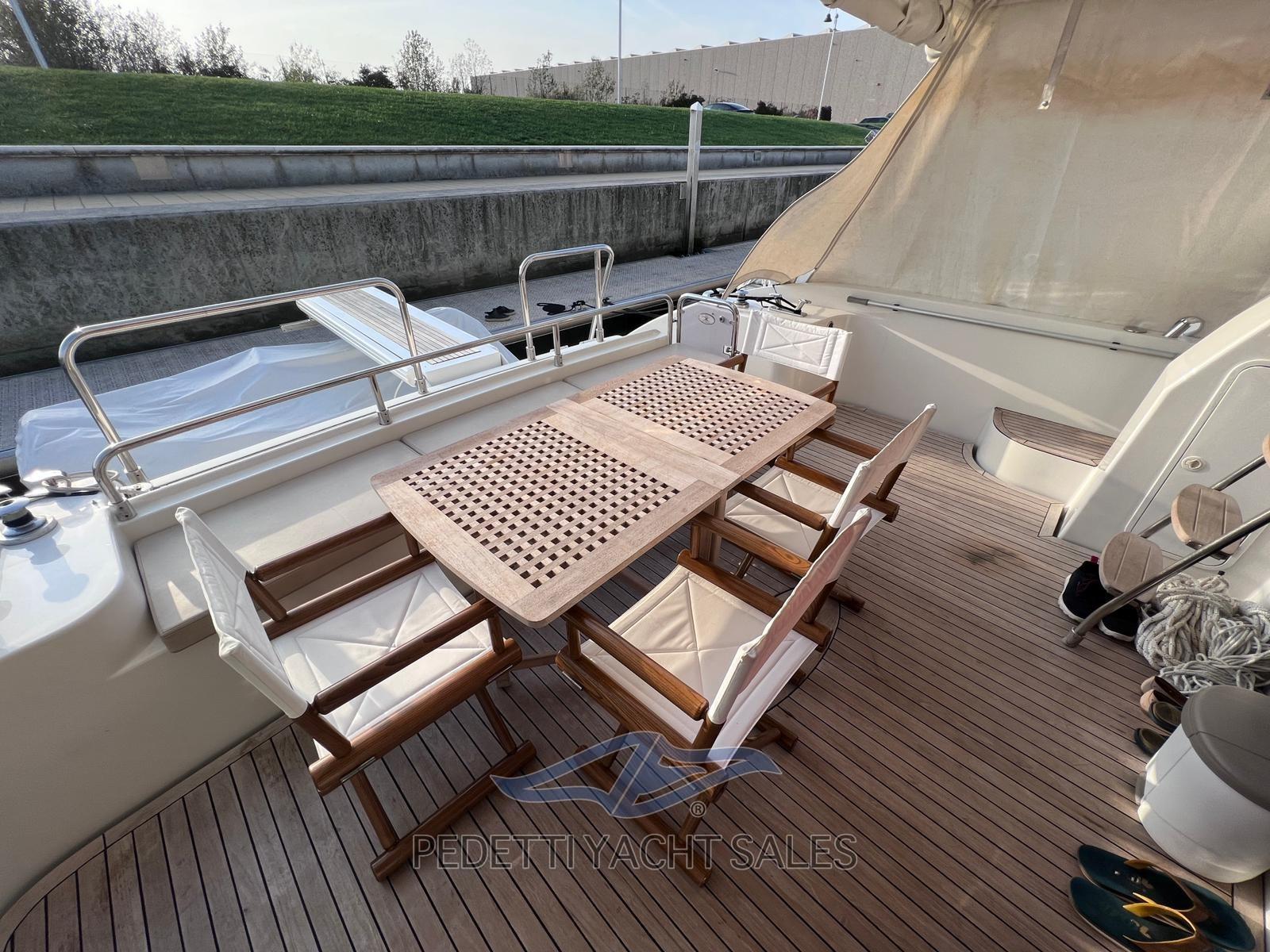 Alarme gaz, Alarme moteur, Alarme de pompe de cale, Eau sous pression, Passavant en teck, Douche de cockpit, Double barre à roue, Flaps électriques, Extincteur(s) fixe(s), Indicateurs de flaps, Éclairage de courtoisie, Passerelle, Pompe de cale automatique, Pompe de cale manuelle, Cockpit en teck, Prise de quai, Onduleur, Guindeau électrique, Echelle de bain, table de cockpit, Annexe, Corne.